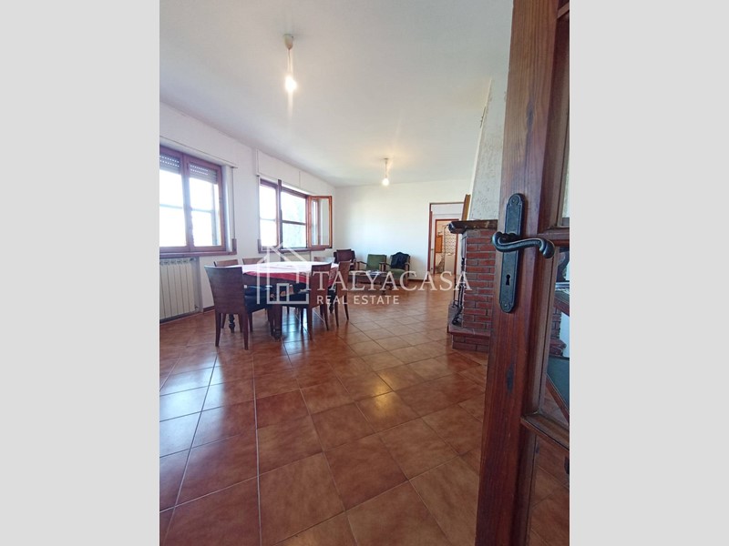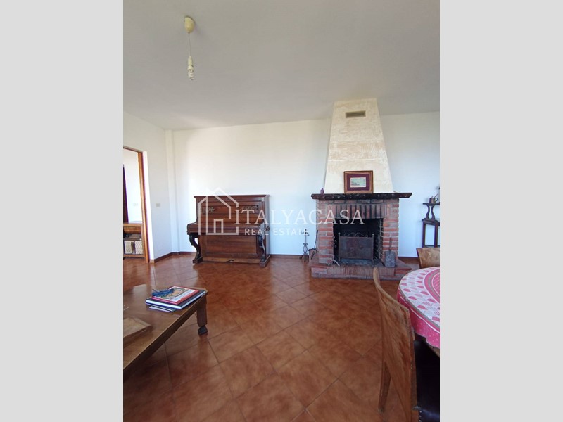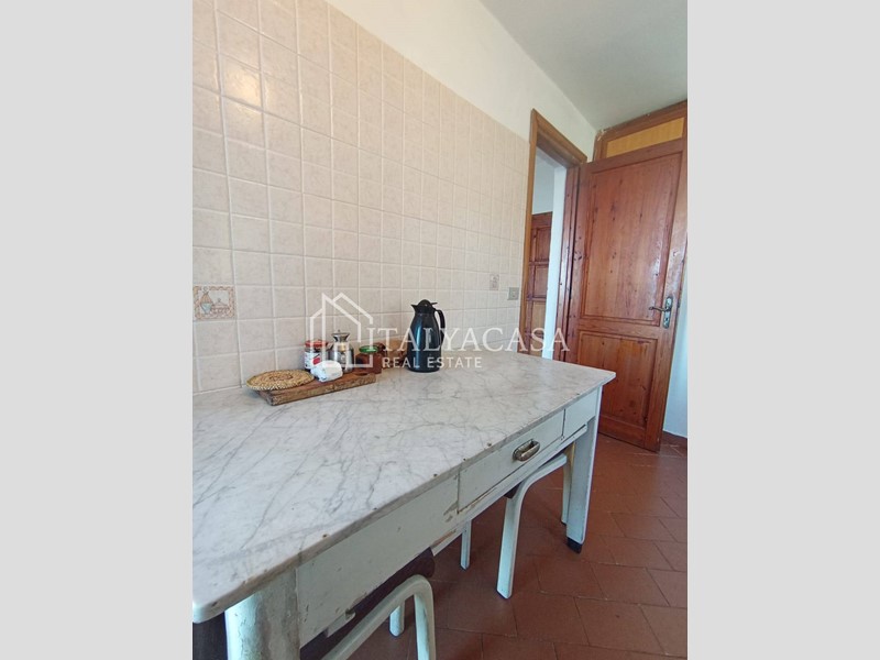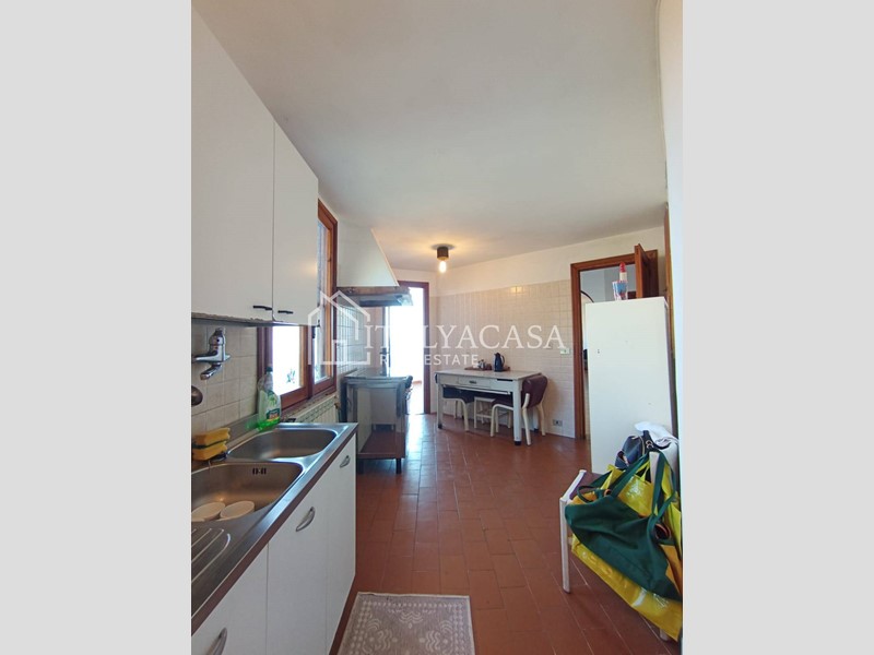 Dalla cucina si accede a una meravigliosa terrazza loggiata, perfetta per pranzare all'aperto o semplicemente per godere della vista sul paesaggio circostante.