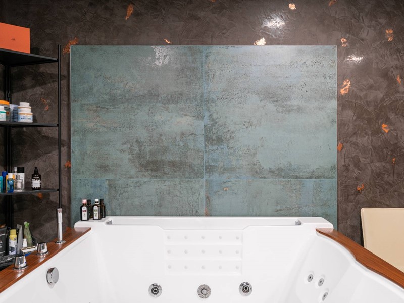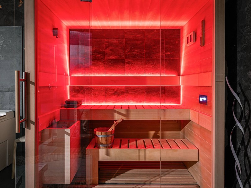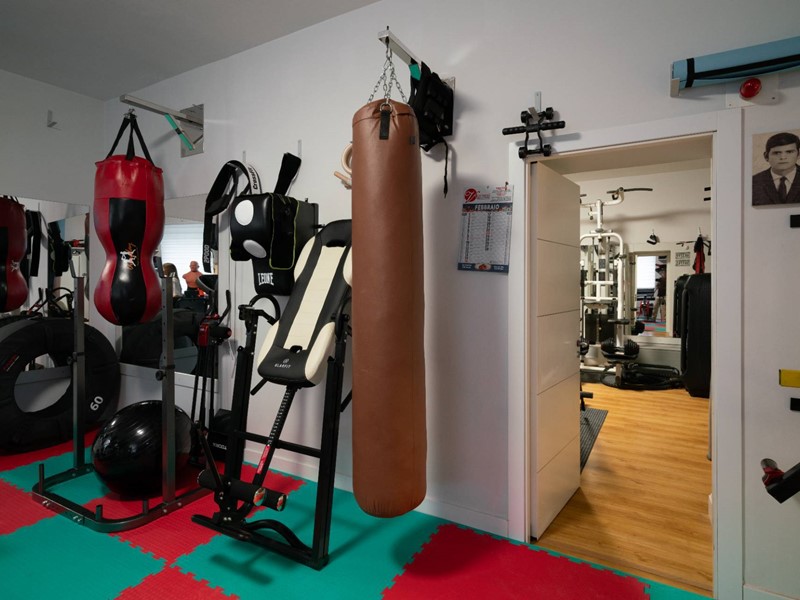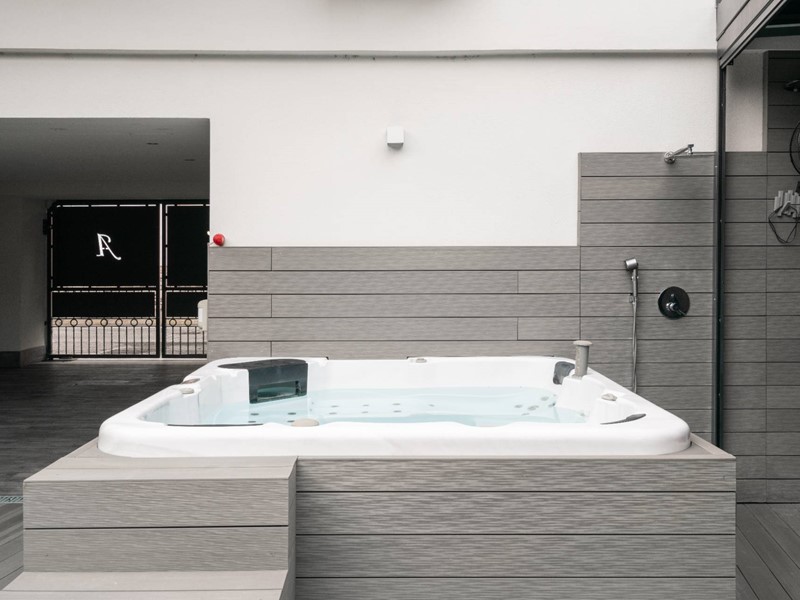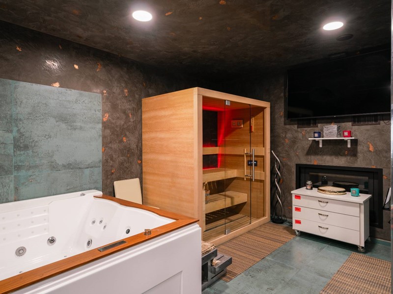 Lingresso principale si apre sul piano terra, dove unampia zona living con camino scenografico di design, che regala unatmosfera calda e conviviale, separata dalla cucina moderna e funzionale, completamente attrezzata. Sempre al piano c'è un elegante bagno con vasca idromassaggio, area benessere e ulteriori due locali atrezzati dedicati al fitness. Un grande valore aggiunto è rappresentato dalla splendida area esterna, lounge coperta, jacuzzi, vasca del ghiaccio per la crioterapia solarium e doccia. Una corte privata riserva due comodi posti auto coperti.