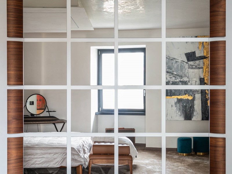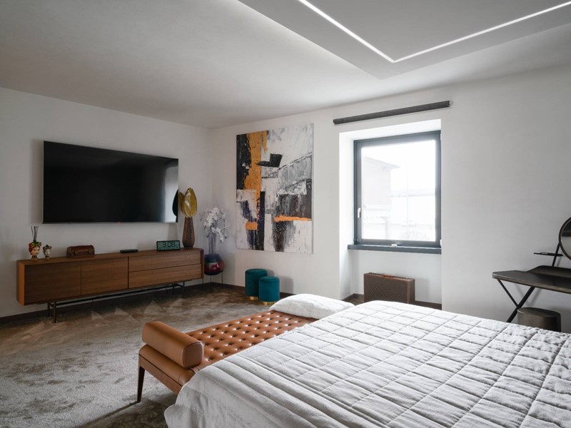 La suite padronale è elegante e di charme, un'ampia camera con due cabine armadio, una per lui e una per lei, e un bagno elegante dai toni sofisticati.