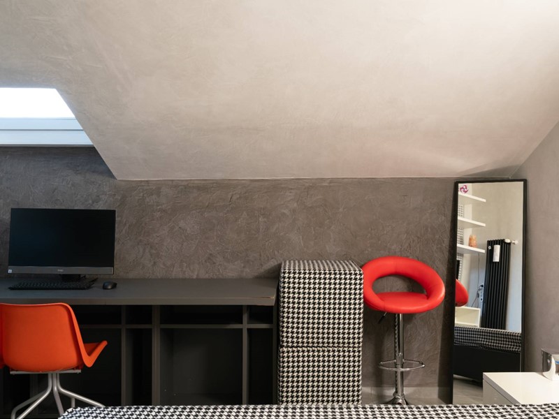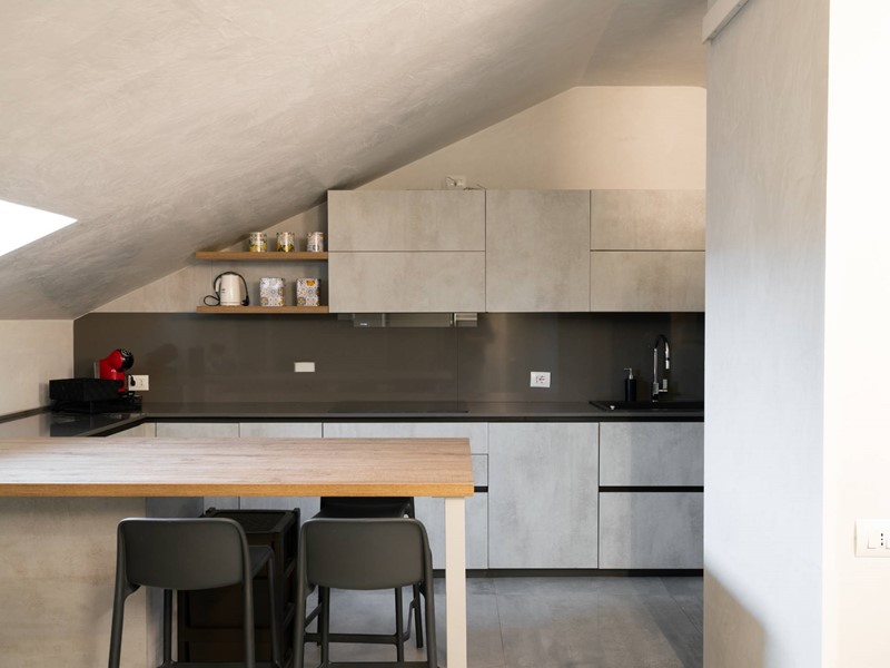 Allultimo piano, una accogliente e spaziosa mansarda ospita due camere da letto, un bagno moderno, una ulteriore cucina e un magnifico terrazzo a tasca di oltre 13 mq con grande privacy e riservatezza.
