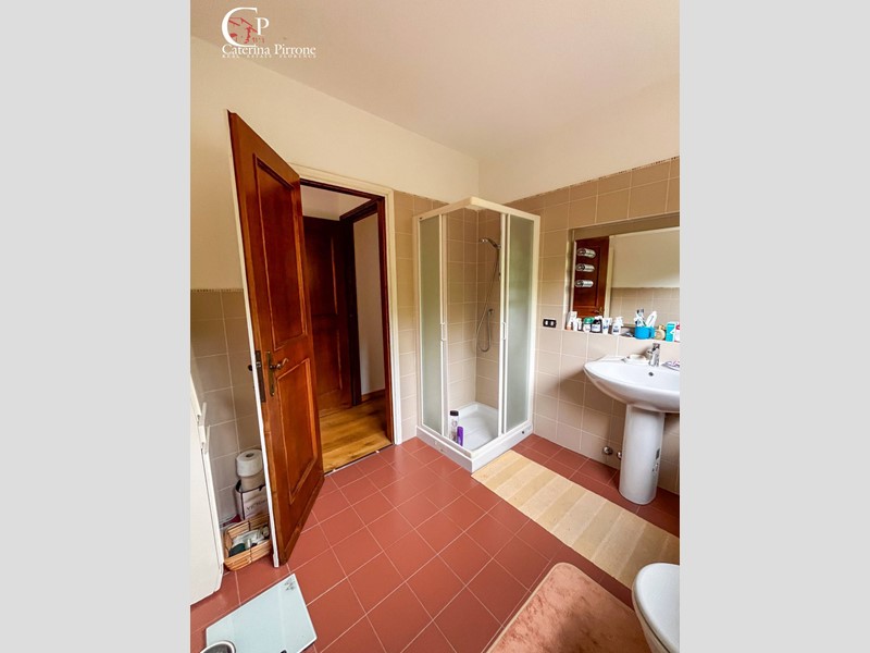 L'ingresso centrale dell'appartamento, protetto dalla piacevolissima loggia frontale, da accesso sul lato di sinistra alla bellissima zona giorno suddivisa, tramite l'arredo, in zona studio, zona relax divani, zona pranzo; sulla destra dell'ingresso si trovano la cucina e un secondo ampio soggiorno con camino. Al primo piano, al quale si accede tramite una bella scala elicoidale, troviamo la zona notte con 4 camere da letto, tra le quali una padronale con bagno interno e balcone, molto ampia e luminosissima grazie a finestre e porta finestra; presente anche un secondo bagno grande e finestrato, mentre il terzo servizio è ubicato nella zona giorno.