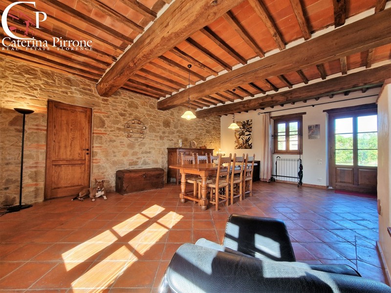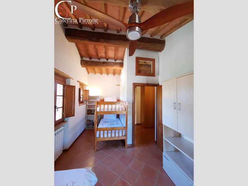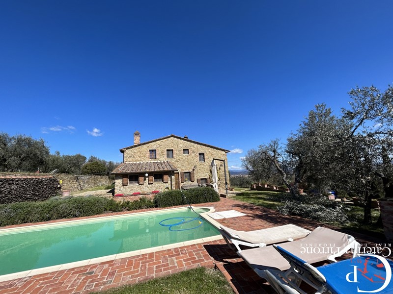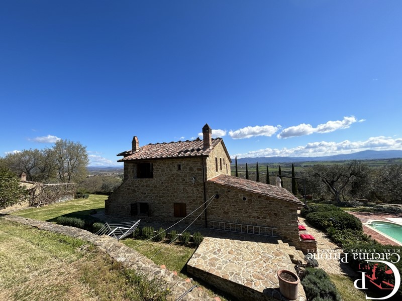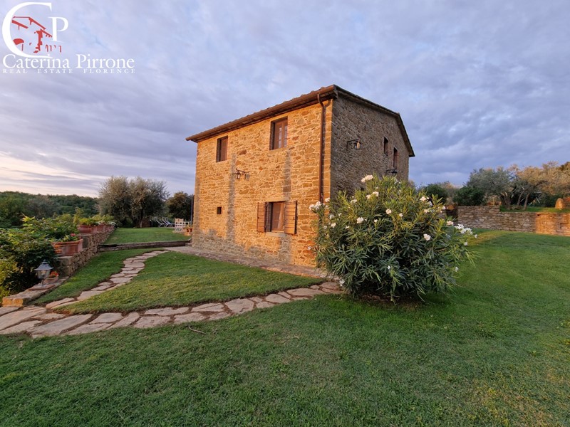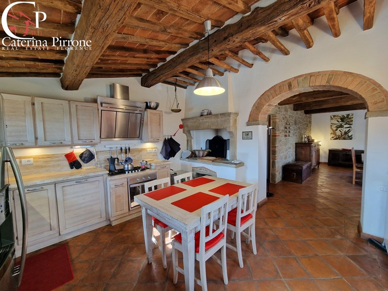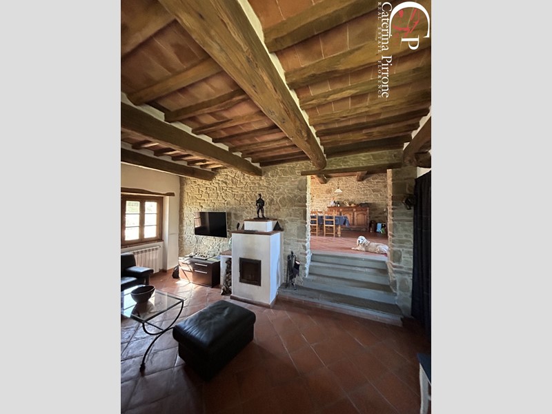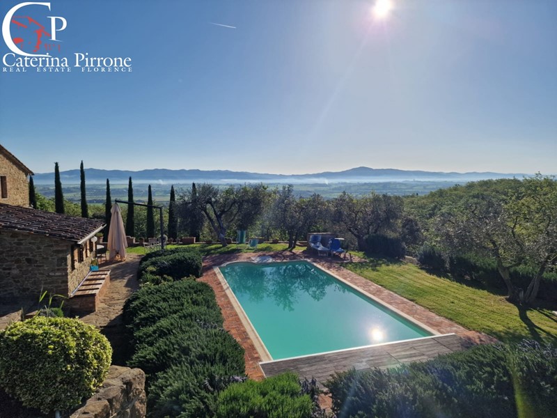Monte San Savino, località Pastina, nel cuore della Toscana in un ambiente tranquillo e boscoso tra Firenze, Siena e Arezzo, vendesi casa di mq.180 con dependance agricola di mq.50 (entrambe ristrutturate nel 2010) e terreno di 6,65 ettari. L'abitazione principale è composta da 3 camere da letto, 2 bagni completamente attrezzati, uno con doccia e uno con vasca da bagno e al piano terra un WC, vicino alla piscina. La proprietà è stata ristrutturata nel 2010 da artigiani locali con materiali di qualità e riciclati, e con tutti i comfort (riscaldamento centralizzato, pannelli solari, ecc.). Sul terreno collinare troviamo 400 piante di ulivo e alberi da frutto. Dalla terrazza a est si ha una magnifica vista sulla Val di Chiana: è attrezzata con un grande ombrellone e una piscina rettangolare Desjoyaux di m.10x4,5 con scala romana e una profondità da m.1,20 a 1,65 (accessoriata di pompa di calore Zodiac, robot Zodiac e la copertura invernale). C'è anche un sistema di irrigazione installato e il trattore Kawasaki FR651V (2020) incluso nella vendita. Euro 1.250.000 CPVILL86