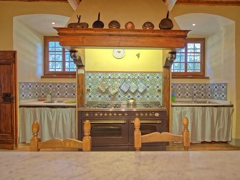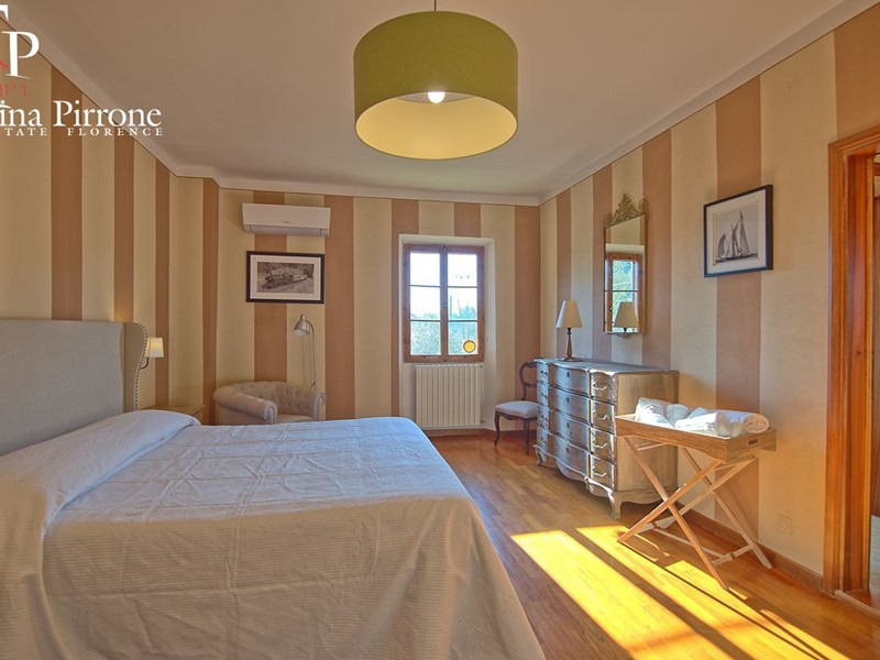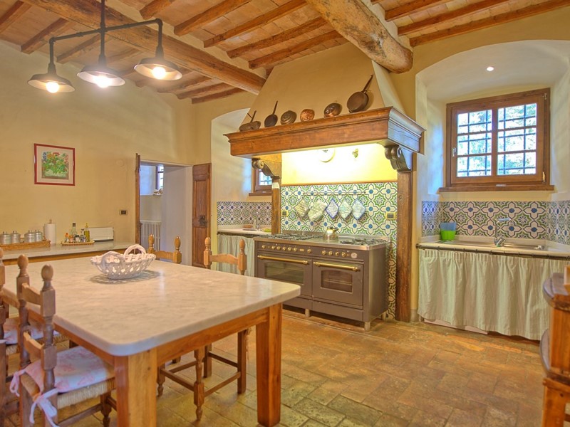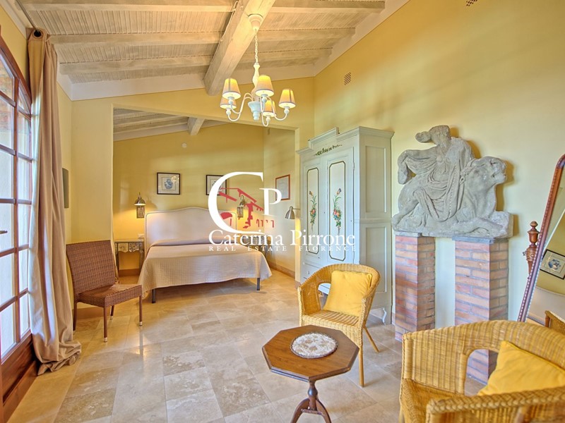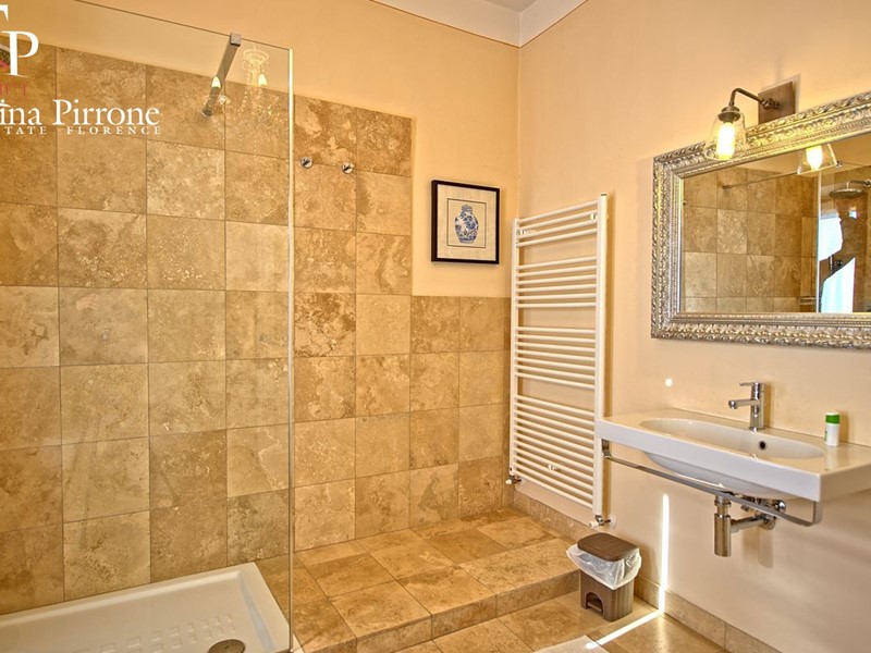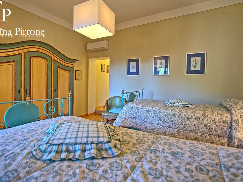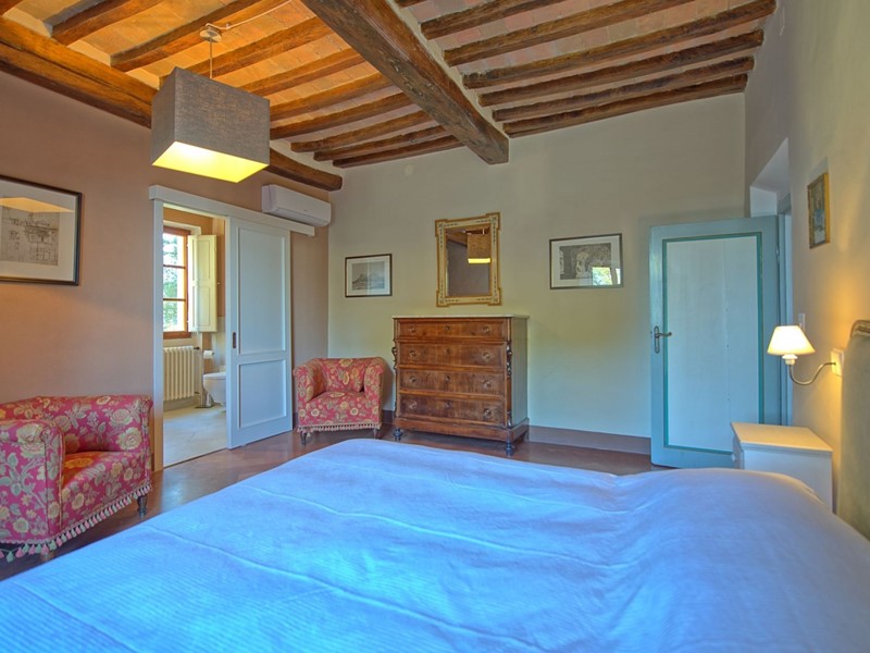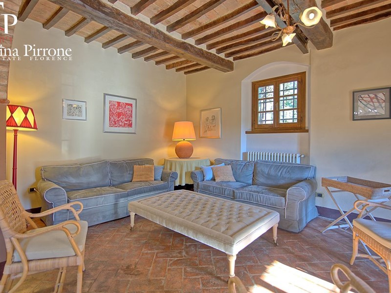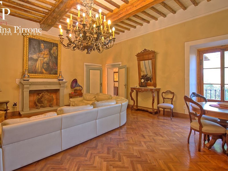 Al piano terreno 8 vani con cucina abitabile, sala da pranzo, salotti con camini antichi, camera con servizio e altri vani ad uso vario, accesso alla cantina scavata nella pietra. Al piano primo ampio salone con camino e accesso al balcone panoramico e 8 camere con 5 bagni. Al piano superiore soffitta con altri 4 vani e accesso alla torretta panoramica con vista sulla campagna toscana a 360 gradi.