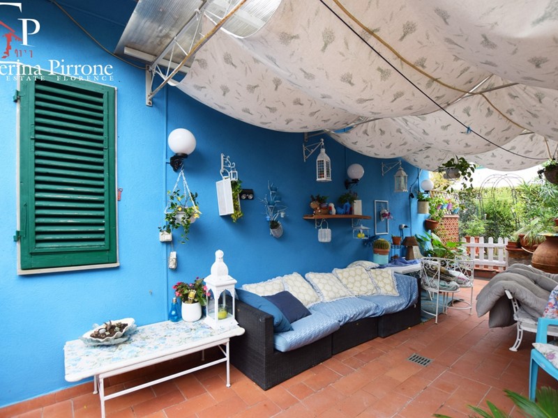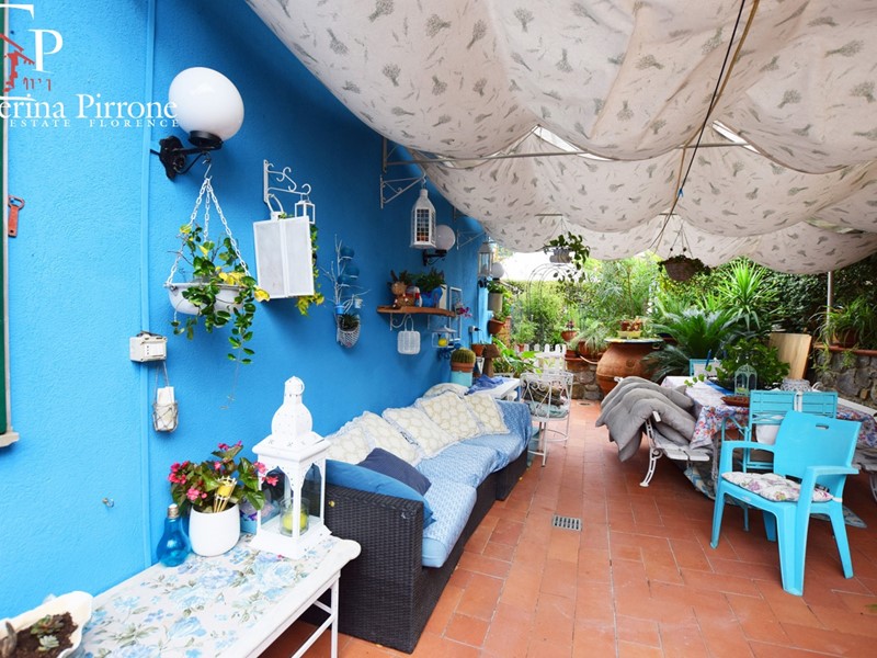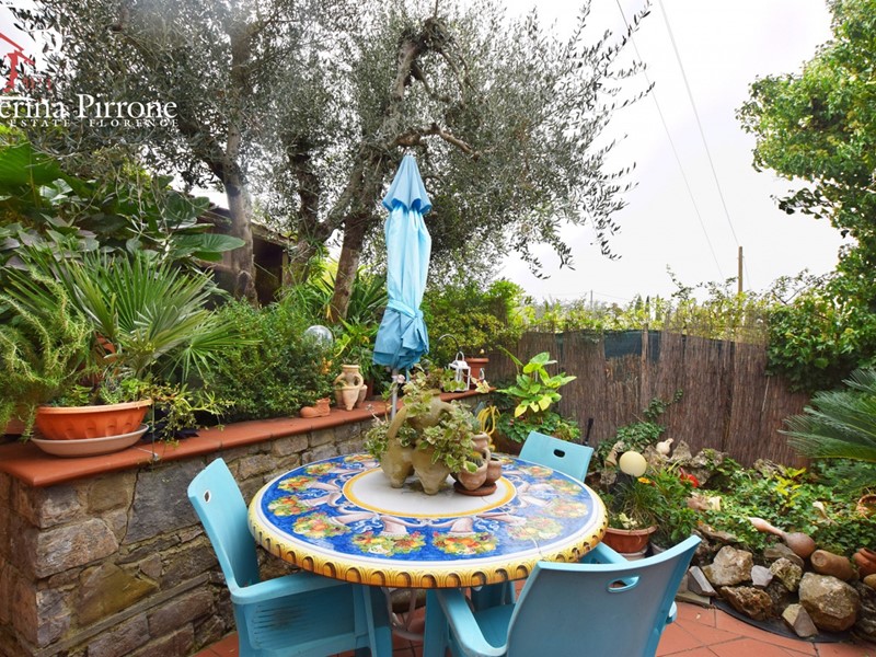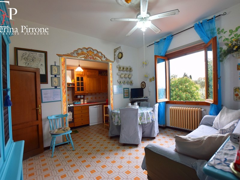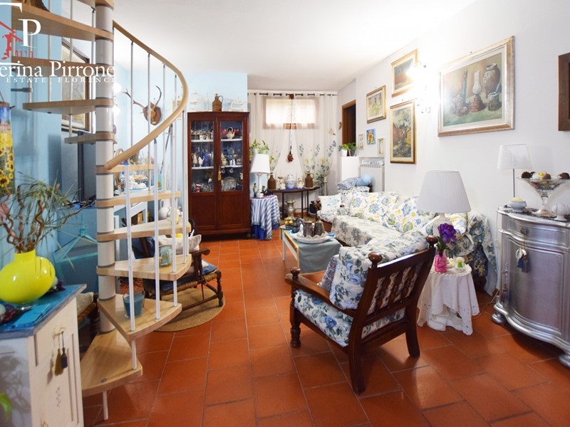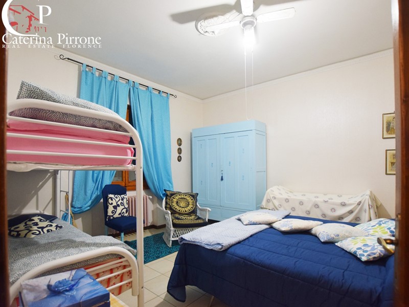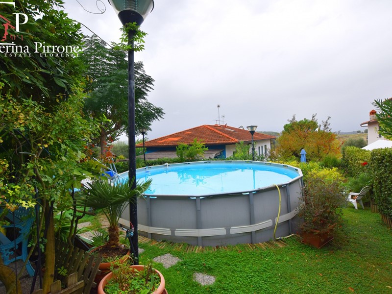 Greve in Chianti, località Chiocchio, a 15 minuti da Impruneta e Grassina, in campagna, ma vicino alla strada principale e ai servizi, VENDESI porzione di villa bifamiliare disposta su due livelli. E' composta da ingresso dal giardino sull'ampio soggiorno, cucina abitabile con accesso al vano dispensa/lavanderia, camera da letto matrimoniale e servizio finestrato con vasca idromassaggio e doccia. Al piano superiore, collegato da scala a chiocciola o con accesso indipendente, troviamo cucinotto e tinello, camera matrimoniale, bagno finestrato e altro piccolo vano adatto anche a studio, oltre a soffitta praticabile. Completano la proprietà bella terrazza arredata con zona relax e forno/camino, garage (possibile cambio di destinazione) che accede direttamente al soggiorno del piano terreno e al vano lavanderia. Riscaldamento autonomo. Giardino terrazzato di mq.800 con piscina fuori terra e orto. Pozzo privato. Da rimodernare. Euro 495.000 VILL213