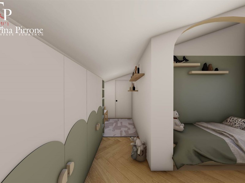 Trattasi di appartamento di mq.113 circa con ingresso indipendente al piano primo ed ultimo, dotato di 3 camere, doppio bagno di cui uno en suite, ampio soggiorno con angolo cottura, grande loggiato abitabile che affaccia sulla campagna, oltre a piccolo giardino privato.