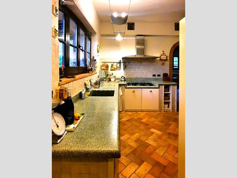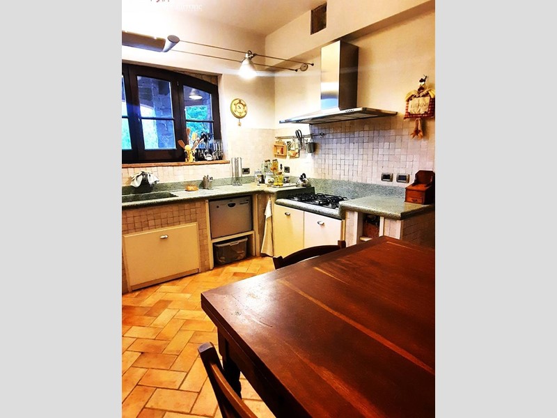 Al piano terra troviamo un ampio salone con camino centrale, cucina in muratura con ripiani in marmo, bagno di servizio ed un locale dispensa-lavanderia.