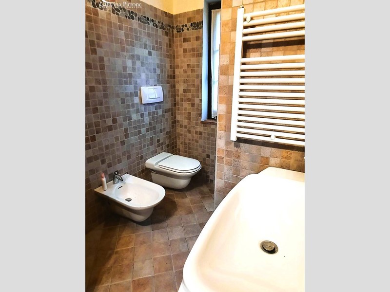 Il seminterrato, a cui si accede dallesterno, comprende un garage, un locale tecnico dotato dimpianto per la potabilizzazione dellacqua e una cantina-ripostiglio.