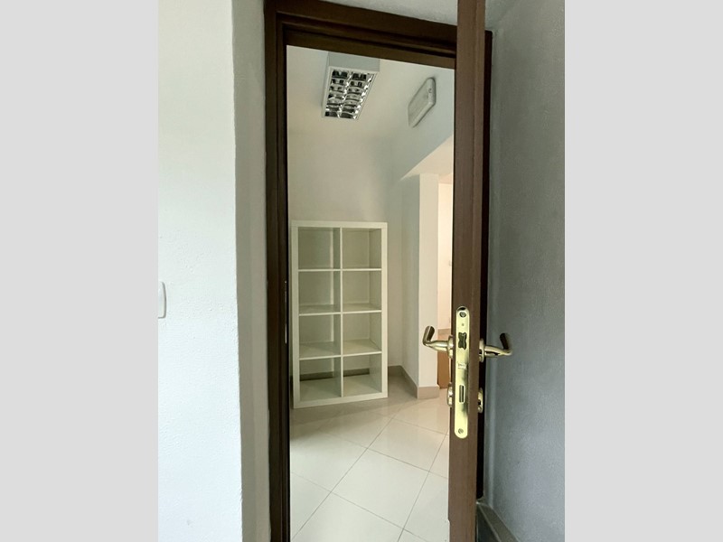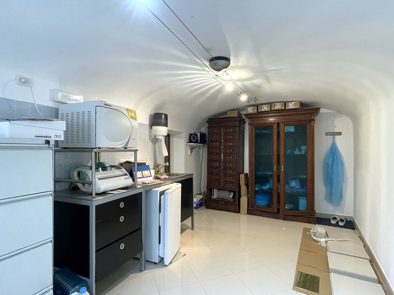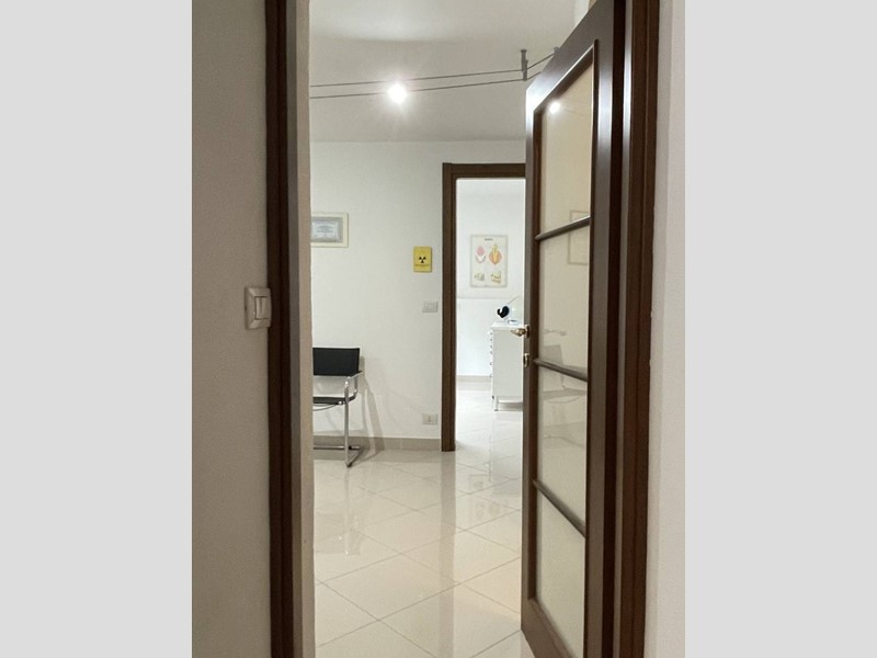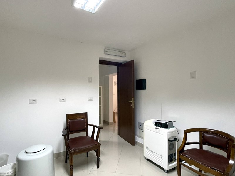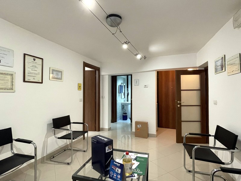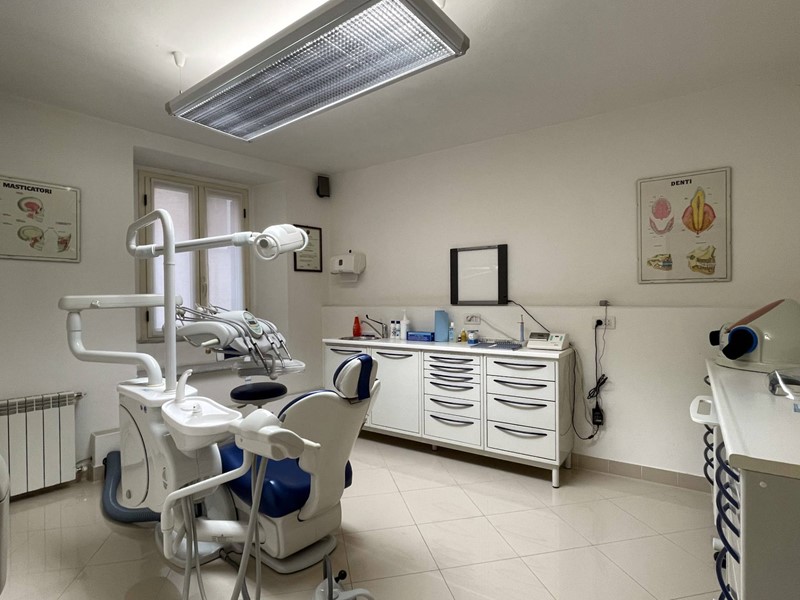 Attualmente configurato come studio dentistico, l'appartamento è in condizioni impeccabili e pronto per una conversione facile in residenza privata. L'ingresso si apre su una spaziosa sala soggiorno, seguita da una cucina abitabile, due accoglienti camere da letto e un bagno.