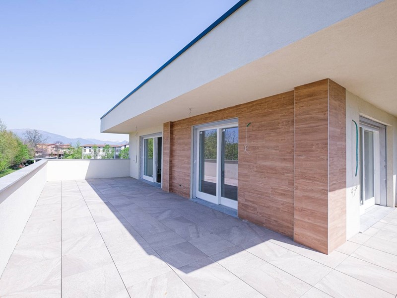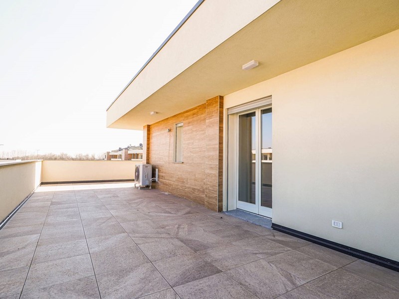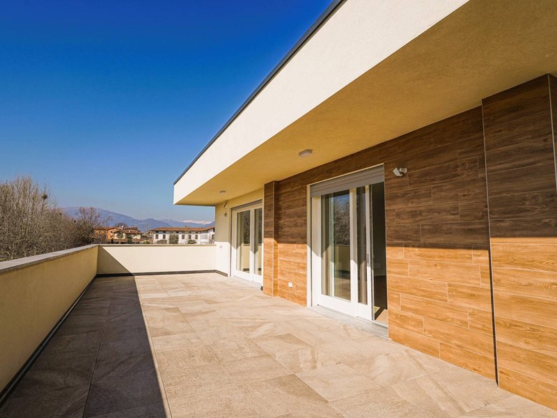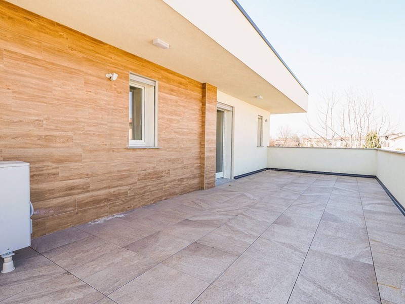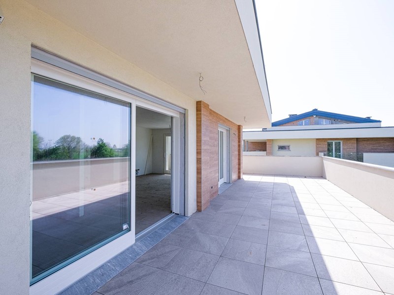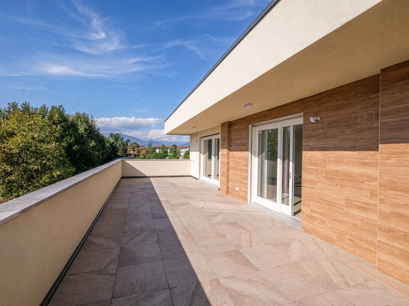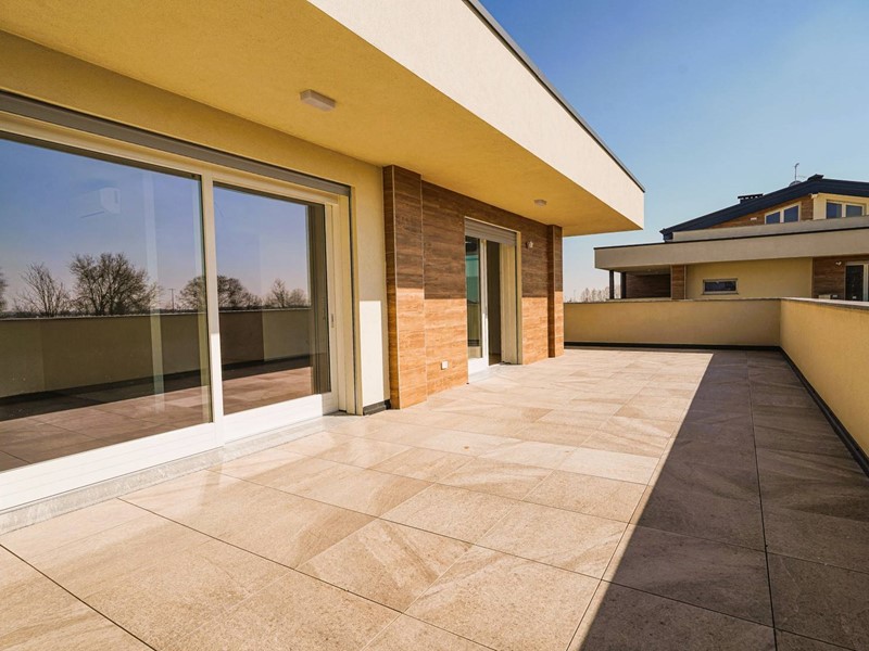 L'ampio terrazzo, accessibile da tutti i locali, offre uno spazio ideale per godere dei momenti di relax all'aperto.
