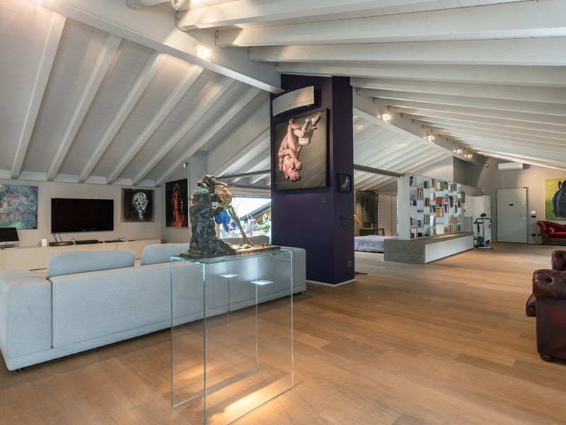 Con 300 mq di superficie, il Loft offre ampi spazi open space, vetrate panoramiche che inondano lambiente di luce naturale,