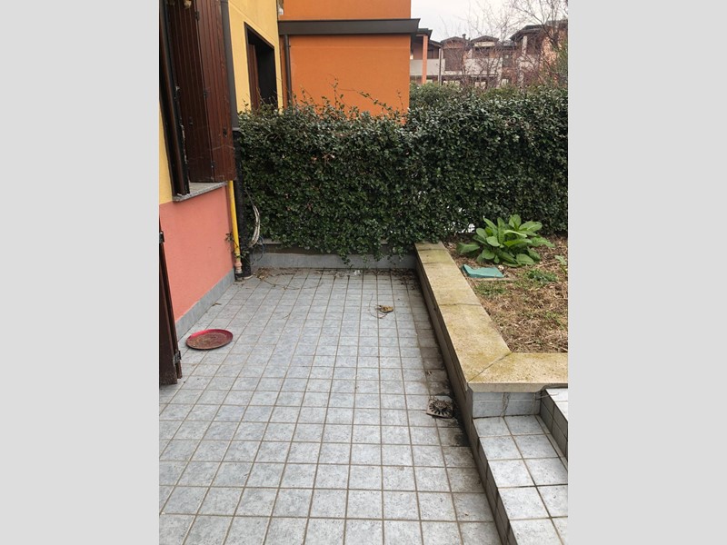 L'immobile, posto al piano terra, è composto da un unico locale, utilizzato come soggiorno e camera da letto, un ampio disimpegno e un bagno con doccia. L'appartamento gode anche di un giardino privato e di una cantina di proprietà.