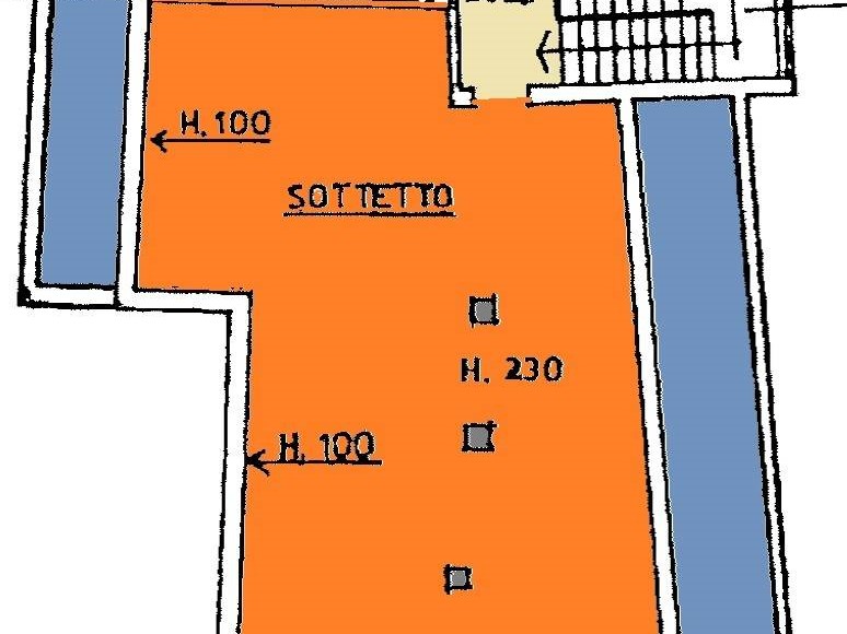 Dallo stesso pianerottolo si accede nella mansarda open space di 70 mq. collegabile al bilocale già esistente.