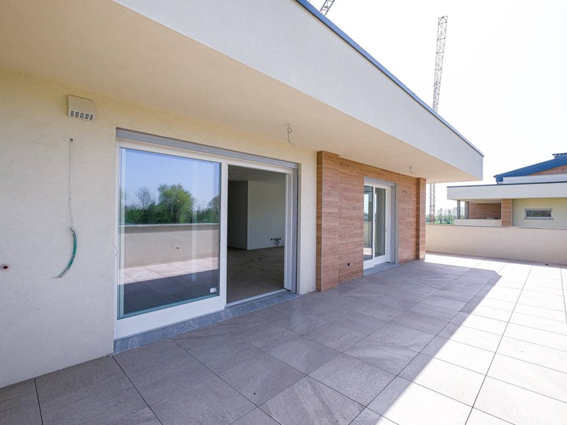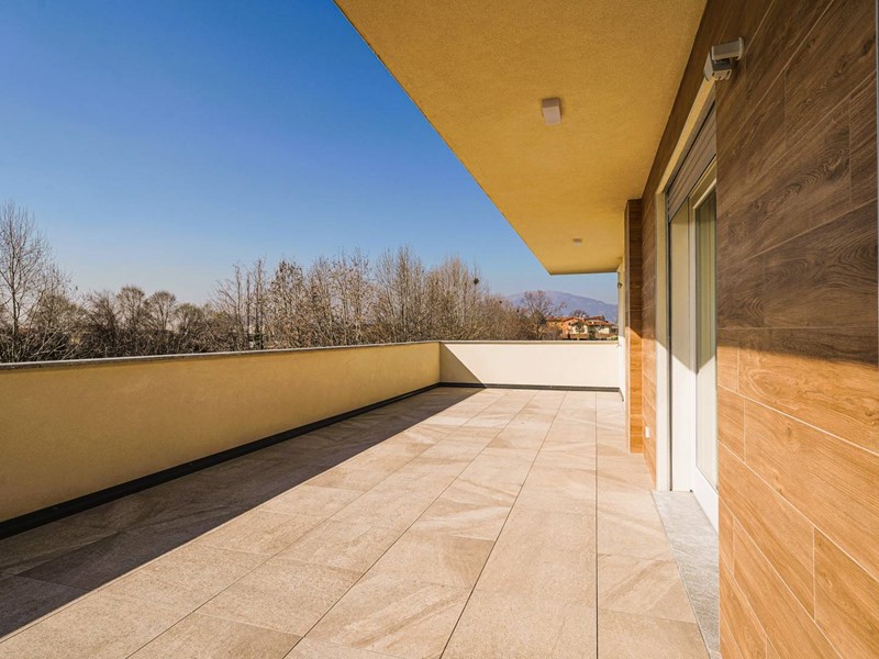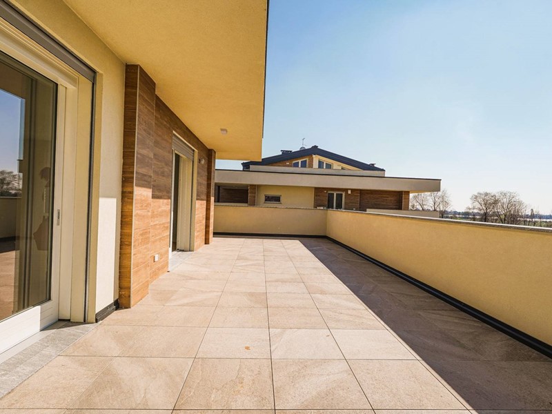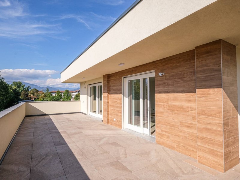 L'ampio terrazzo, accessibile da tutti i locali, offre uno spazio ideale per godere dei momenti di relax all'aperto.