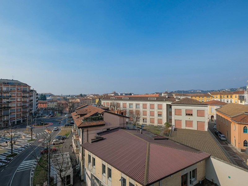 Piano quinto di sei, servito da ascensore, senza barriere architettoniche. Due terrazzi, esposti a ovest, con splendida vista su Città Alta e un balcone a est.