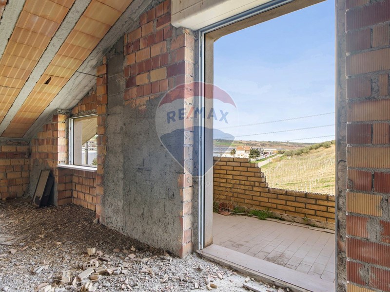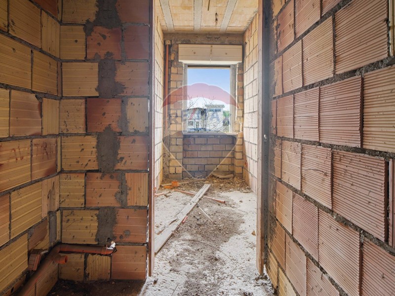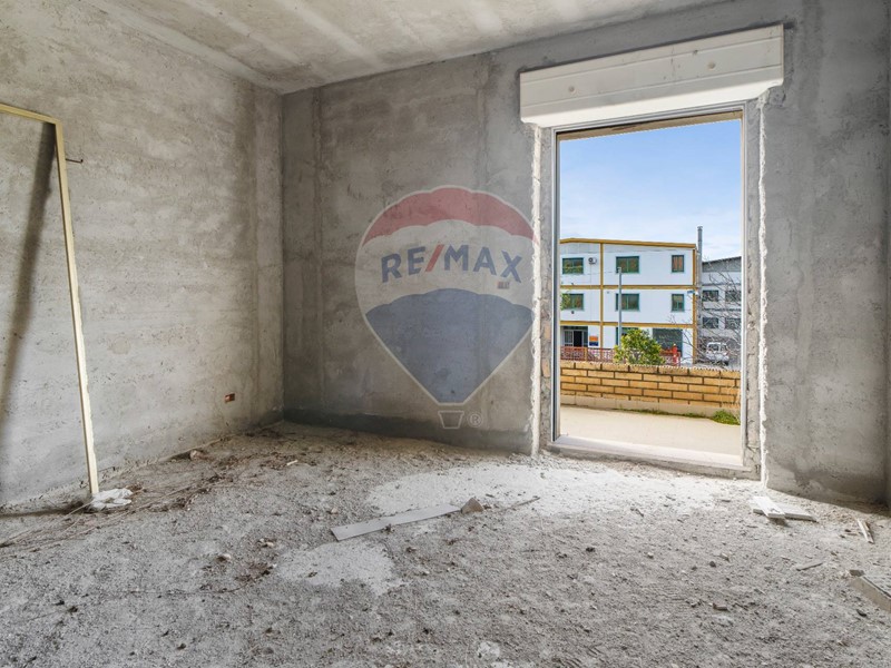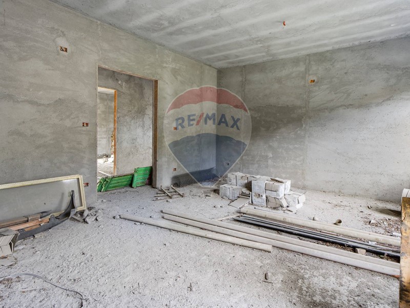 L'immobile, si presenta rifinito esternamente e completo di intonaco, balconi rivestiti e tetto con tegole, ed è dunque un grezzo avanzato in quanto i tramezzi e le tracce degli impianti sono già realizzati all'interno dell'appartamento al piano primo.