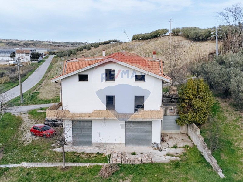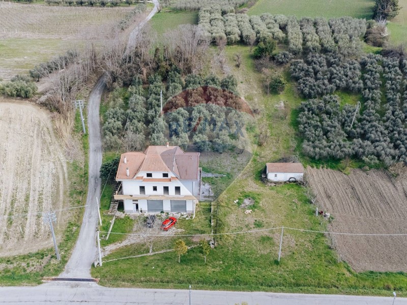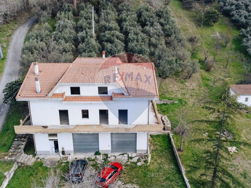 Al piano terra troviamo un ampio giardino di pertinenza che si estende sul retro del fabbricato in un ampio terreno agricolo con circa 100 piante da olivo. Qui vi sono i locali garage/rimessa, con solai alti oltre 3 metri e 4 serrande di ingresso, adatti anche per essere sfruttati come attività di carrozzeria/officina per auto, oltre al bagno, locale cantina nel sottoscala e un altra grande stanza interrata ad uso magazzino di circa 45mq. Annesso al piano terra troviamo anche una cucina rustica con il grande camino perfettamente funzionante e l'impianto dall'arme che si estende anche ai garage.