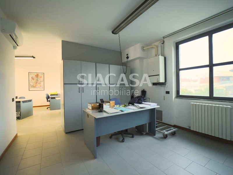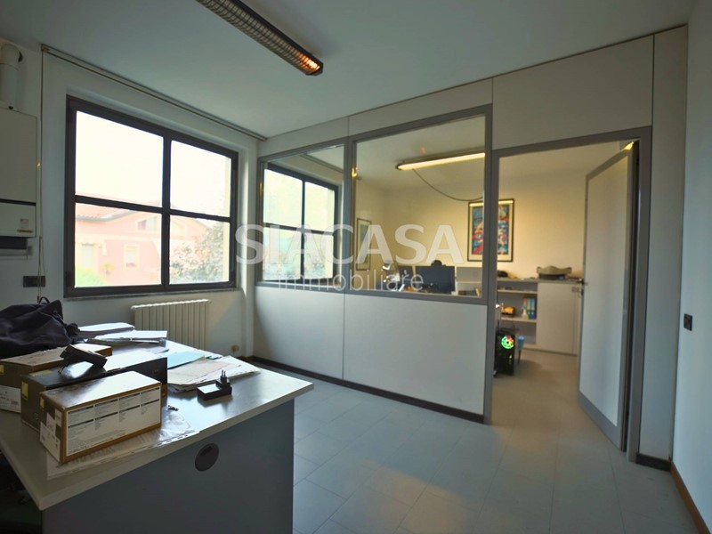 L'ufficio è dotato di un impianto autonomo di riscaldamento con caldaia e di condizionamento mediante due unità split a muro, garantendo il massimo comfort in ogni stagione. A completare la proprietà, un bagno, un piccolo magazzino e un posto auto coperto, incluso nel prezzo di 120.000 euro oltre IVA.