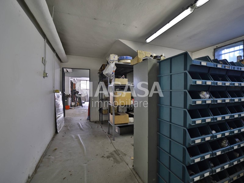 Deposito al piano seminterrato di circa 179 mq, collegato internamente tramite scala e rampa esterna, con ulteriore accesso pedonale separato.
