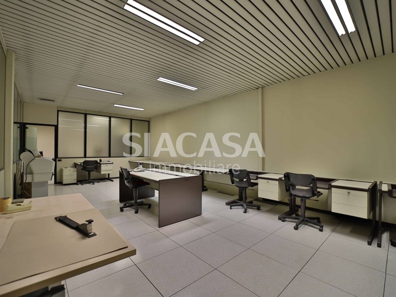 Caratteristiche: 12 locali realizzati con pareti mobili e pavimento flottante, ampio parcheggio esclusivo adiacente, ideale per laboratorio.
