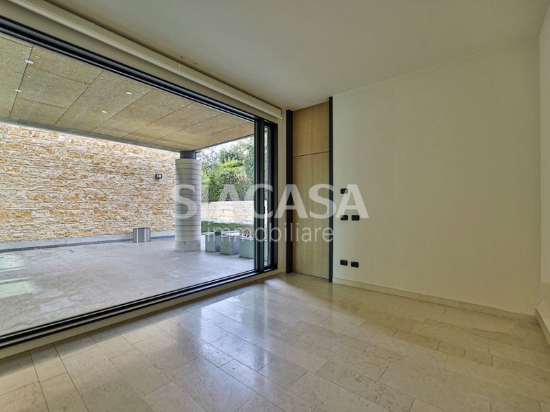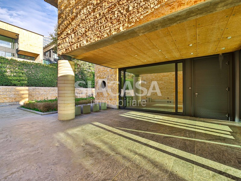 Questa splendida villa progettata dall'architetto Mario Botta si sviluppa su un elegante piano terra di 98,00mq, interamente vetrato per garantire una connessione armoniosa con il verde circostante. Il design ricercato e funzionale rende la casa unestensione del giardino, inondando gli spazi interni di luce naturale e creando un continuum con lesterno. Attraverso due ampi portici coperti di 65,00mq, si accede a un giardino dingresso e a un giardino retrostante, per una superficie complessiva di 240,00mq, offrendo la perfetta combinazione di privacy e natura.
