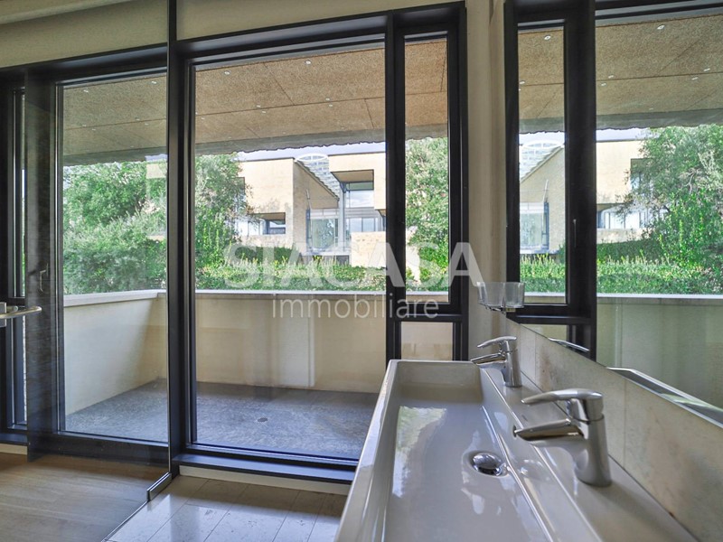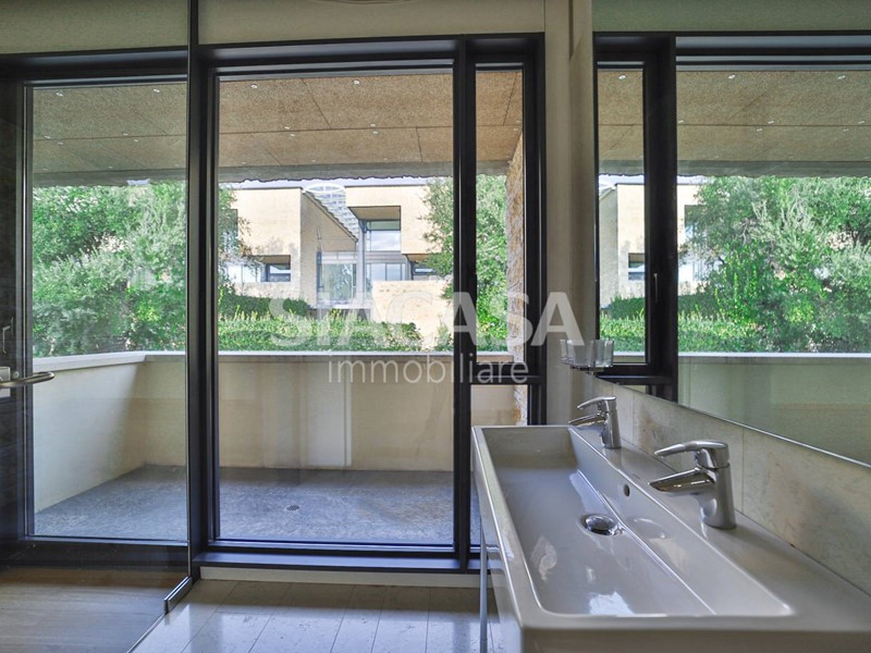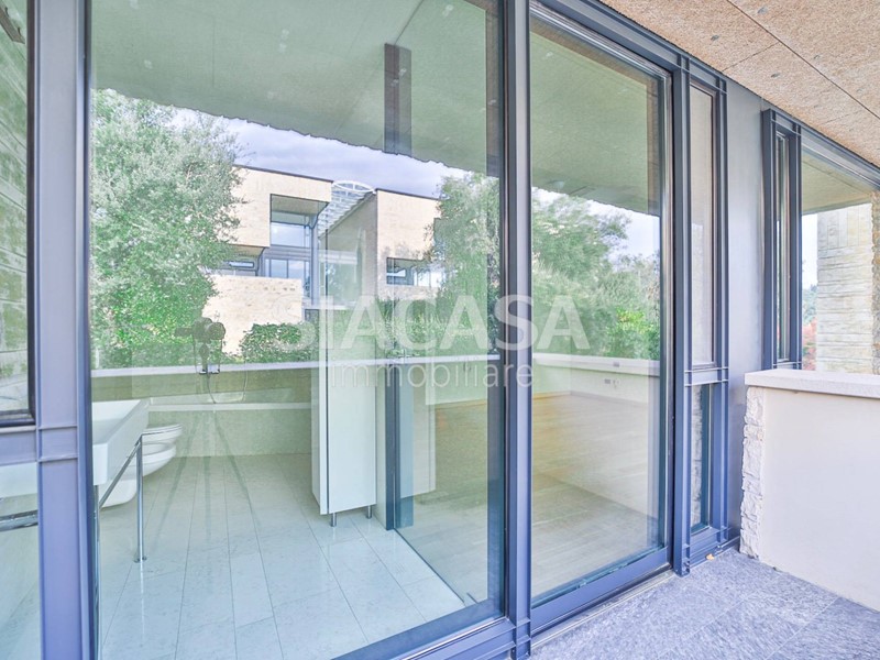 Al primo piano, questa villa offre una zona notte pensata per il massimo comfort e la privacy. Qui si trovano tre ampie camere da letto matrimoniali, ognuna dotata di un proprio terrazzino privato che permette di godere della tranquillità e del verde circostante. La suite padronale dispone di un bagno privato, mentre unaltra delle camere si distingue per due pareti interamente vetrate che si aprono su un terrazzo esclusivo di 15 mq, regalando una vista suggestiva e unincredibile luminosità. A completare il piano, un secondo bagno, ben rifinito e funzionale, al servizio delle altre camere.