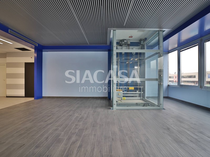 Accesso garantito da un prestigioso ascensore panoramico a vetro, che valorizza limmagine aziendale.