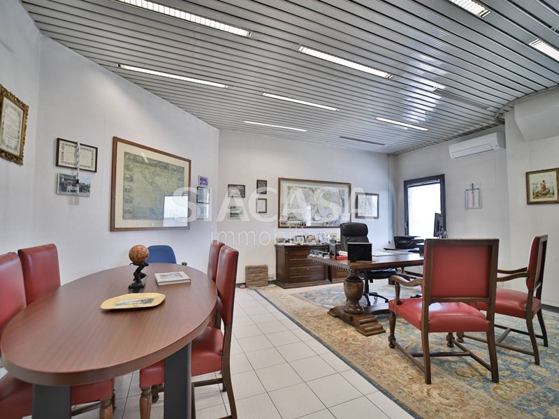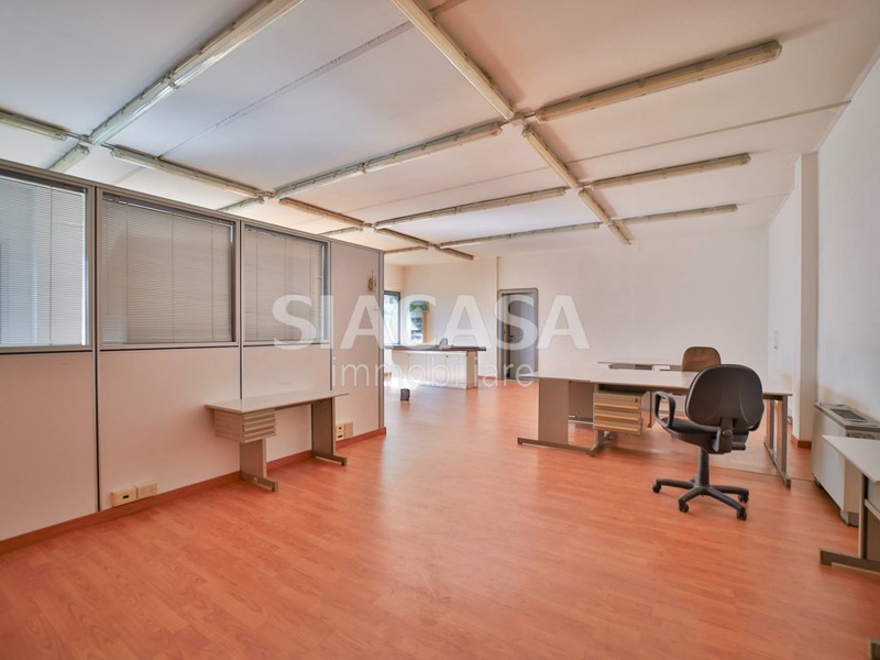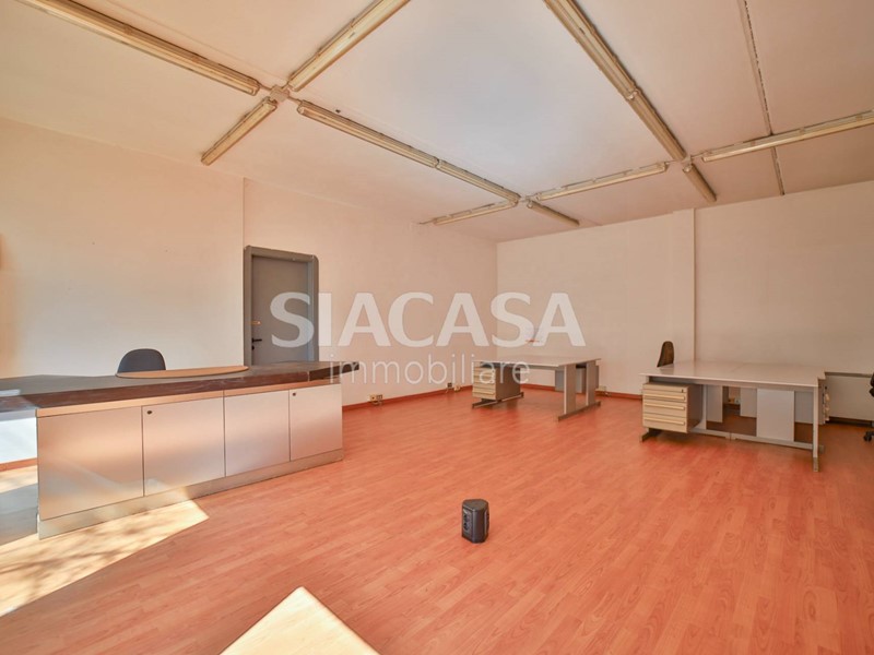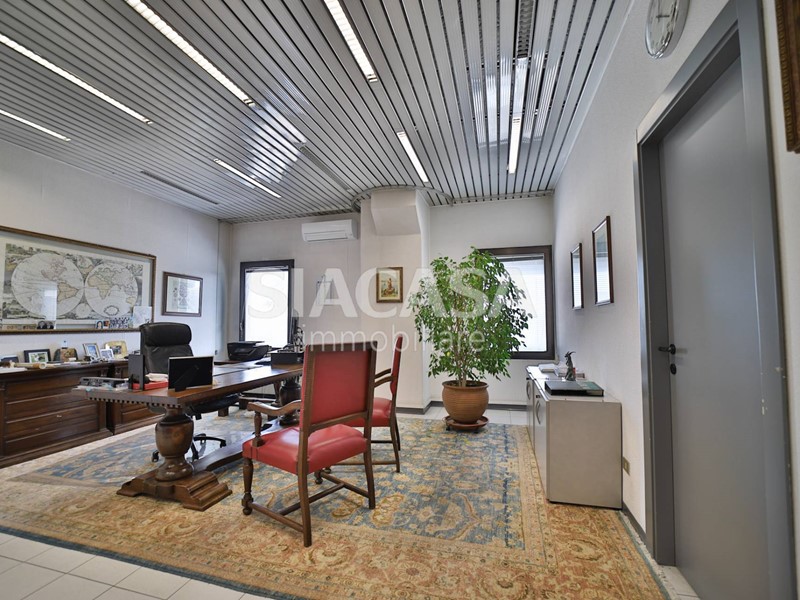 Al piano primo, accessibile tramite scala interna, si trovano circa 310 mq di uffici o showroom, serviti da due ulteriori servizi igienici.