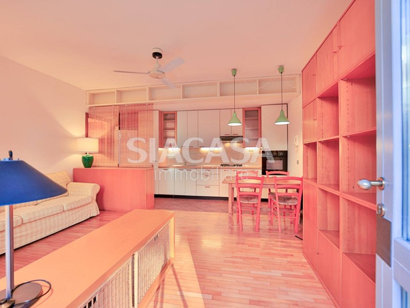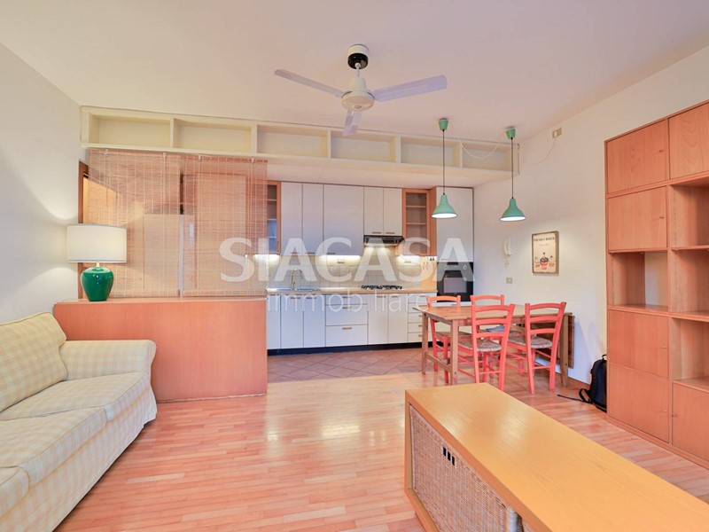 Allinterno, lappartamento accoglie con un comodo soggiorno dotato di cucina a vista, un pratico disimpegno armadiato, una camera matrimoniale con affaccio diretto sul portico tramite porta finestra e un bagno completo di mobile lavanderia.