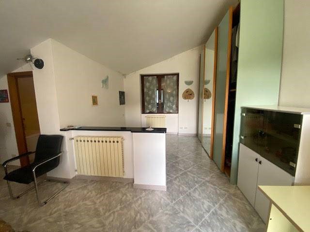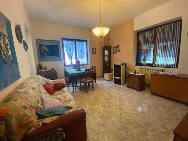 La casa, in buone condizioni interne e con ampi spazi esterni è composta da ingresso, soggiorno con cucina a vista, due camere, bagno, terrazza e balcone al piano primo; al piano secondo sottotetto ampia zona giorno con cucina a vista, camera, bagno e balconata.