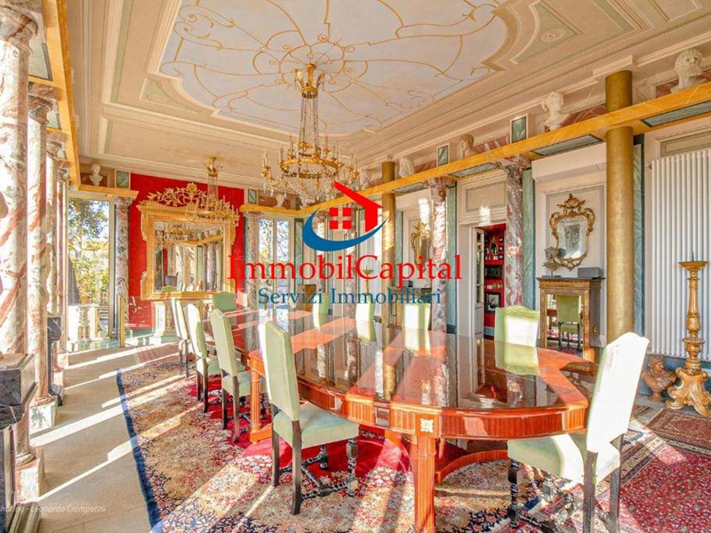 Laccesso alla villa avviene al piano terra tramite un doppio ingresso. Le due entrate, rigorosamente in vetro, sono collegate da una galleria ,la stessa disimpegna una sala da pranzo affrescata, collegata allampia cucina abitabile, una biblioteca affrescata, due ampi saloni con importanti camini, oltre ad una zona di servizio ed un primo bagno. Completa il piano terra la magnifica sala delle Colonne di circa 90 mq, orientata verso la valle a sud ovest e totalmente a vetri, che permette di godere di una luce naturale e da cui si può accedere alla terrazza esterna. Al Piano Primo troviamo tre ampie camere da letto, una delle quali con spaziosa area giorno e camino, oltre ad uno studio ed uno spogliatoio. Tutte le camere dispongono di ampi bagni en-suite ed una risulta dotata di terrazza privata con vista della torre del Bugallo.