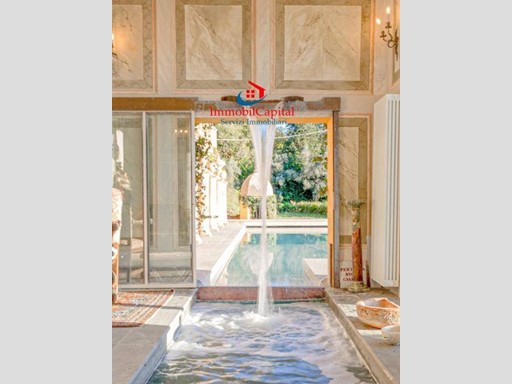 A poca distanza dalla villa completato la proprietà una bella pergola esterna, un edificio di nuova concezione ma che richiama lo stile delle scuderie dellepoca. Al suo interno trovano vari locali ad uso magazzino, bagni in marmo, la cucina collegata allampio salone delle feste, oltre ad un appartamento per personale di servizio. A completamento troviamo una limonaia di circa 300 mq, meravigliosi giardini allitaliana, il giardino allinglese, un oliveto con circa mille piante di olivi. Recentemente è stato anche ripristinato un antico vigneto di circa 2,5 ettari