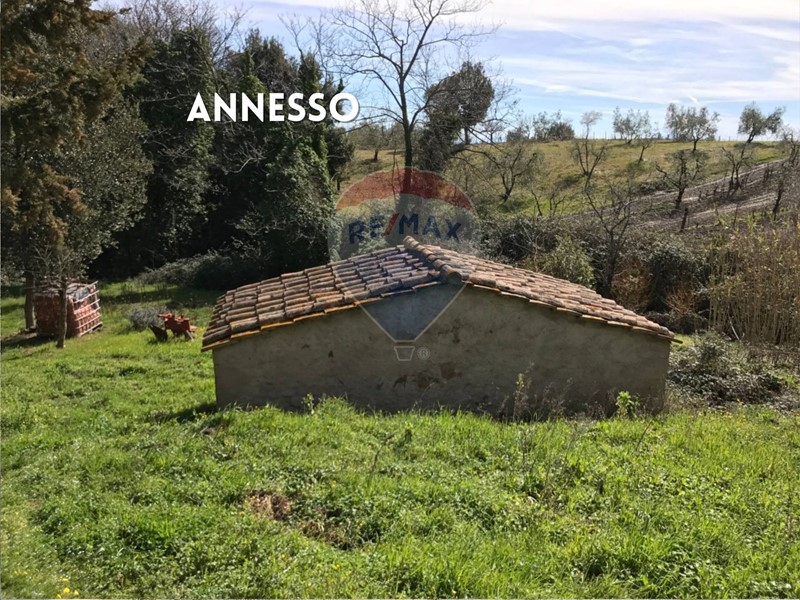 Oltre al casolare principale, il podere include stalle, magazzini, cantine e un garage, fornendo ampio spazio per attività agricole o per la trasformazione in un agriturismo.