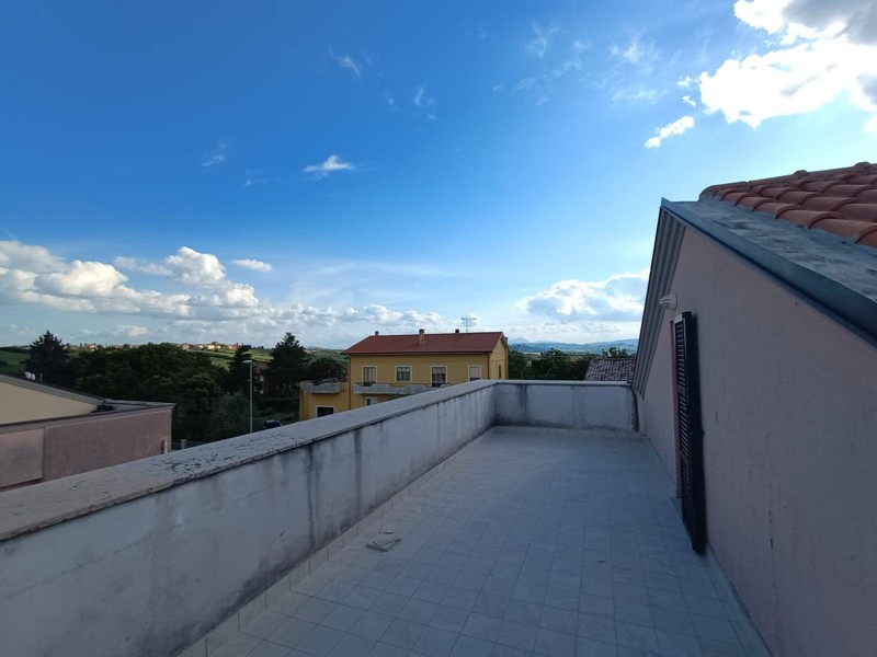 ENTROTERRA 15 KM DA FANO - TERRE ROVERESCHE - SAN GIORGIO - in zona residenziale servita ag. ZF Mediazioni propone in moderno complesso residenziale ultimo appartamento QUADRILOCALE CON MANSARDA E GARAGE ultimato con pavimenti e finiture interne nuove - ingresso su area living con zona cucina a vista, disimpegno zona notte con camera da letto matrimoniale e studio, bagno con finestra. Il living e le camere sono dotate di terrazzi a loggia. Al piano superiore mansardato, due ampi terrazzi e due vani accessori con la possibilità di ricavare il terzo bagno. Completa la proprietà garage esclusivo con secondo bagno. Maggiori informazioni, visite su appuntamento, scrivere a info@lapesarese.it - whts 346/7480725.