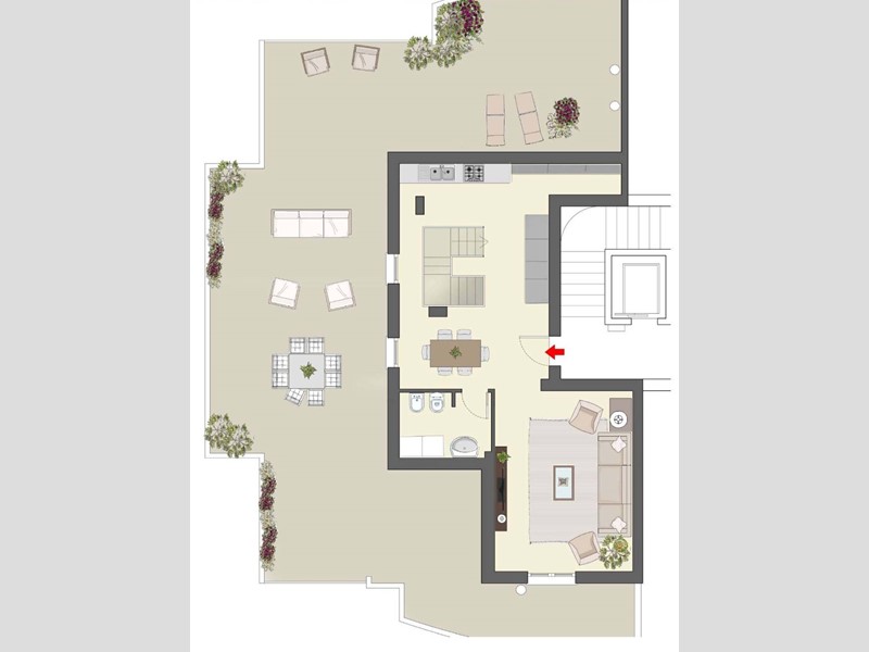 Appartamento di 134 mq su due piani 3 camere, 3 bagni oltre 122 mq di logge e terrazzi.