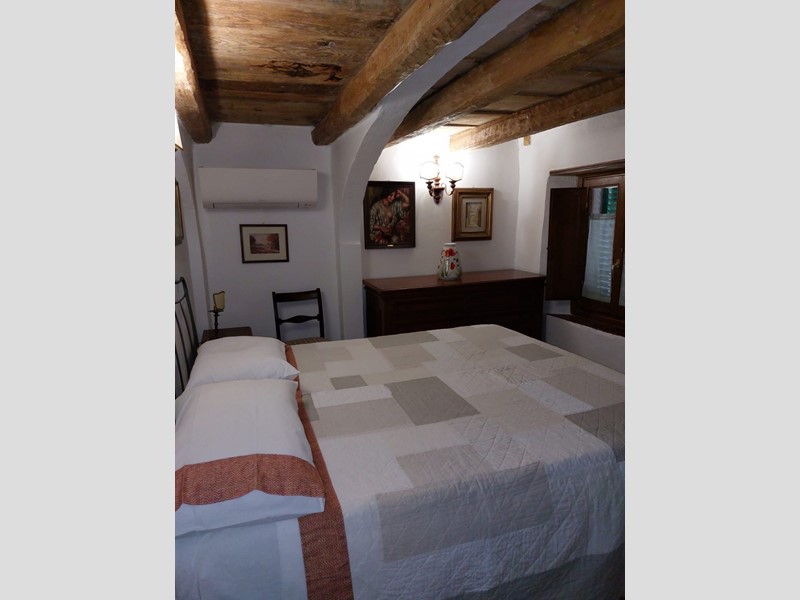 Appartamento di 110 mq ristrutturato, disposto su tre livelli, composto da soggiorno con camino e angolo cottura, ripostiglio al piano terra - studio su soppalco e bagno (con lavatrice) al piano primo, due camere con un bagno ciascuna al piano secondo. Due balconcini con affaccio su giardino interno. Doppio ingresso, uno a comune, uno privato direttamente dalla piazza. Riscaldamento autonomo a metano e stufa economica . Attualmente locato. Giardino privato e corte interna a comune. Vedi Rif. 266C.