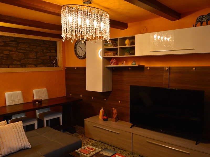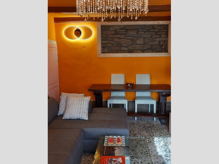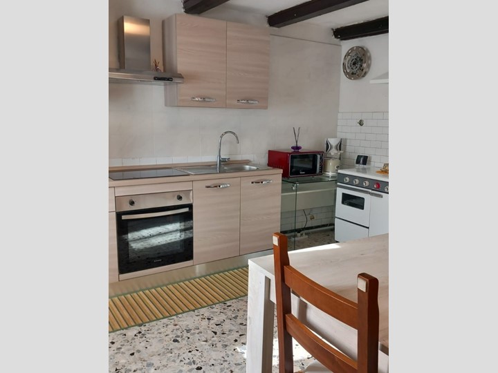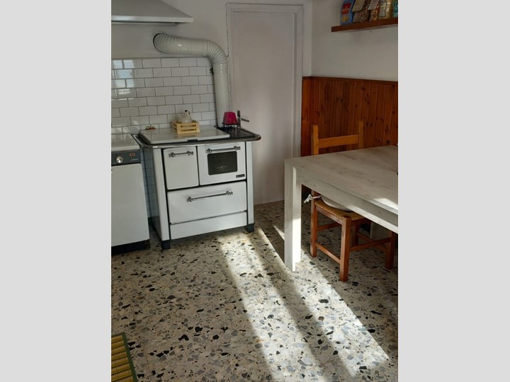 PIANO TERRA - INGRESSO, CUCINA ABITABILE CON ARREDO IN LEGNO DI OLMO, ELETTRODOMESTICI NUOVI E PIASTRA AD INDUZIONE. STUFA ECONOMICA ANNI 50 PERFETTAMENTE FUNZIONANTE E RIPOSTIGLIO. AMPIO SOGGIORNO, CON PARETE IN PIETRA A VISTA E CANTINETTA NEL SOTTOSCALA;