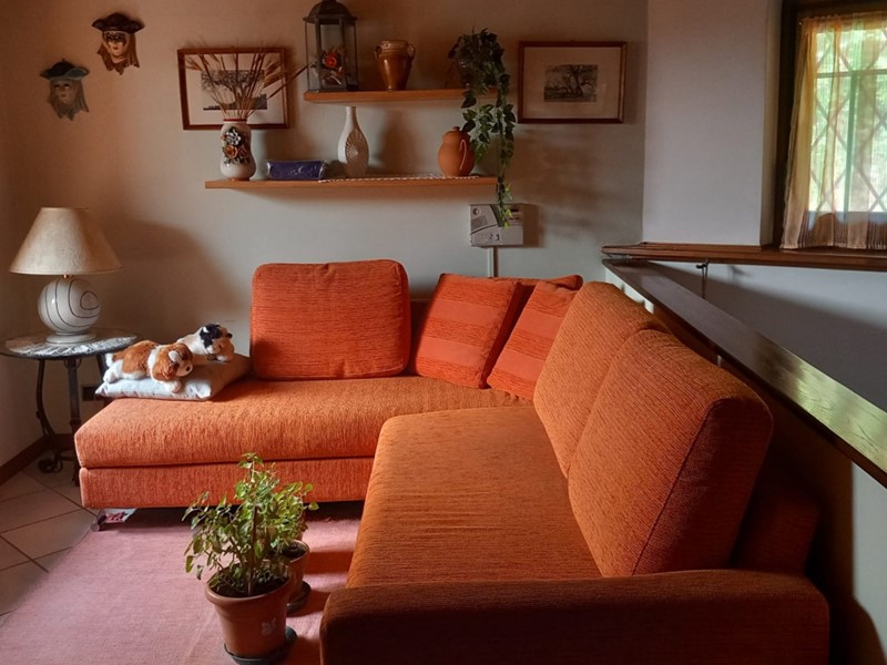 PIANO TERRA - INGRESSO SU AMPIO SALONE CON STUFA A PELLET, CUCINA ABITABILE CON BALCONE, DISIMPEGNO, BAGNO CAMERA MATRIMONIALE E STUDIO CON USCITA SUL RETRO DEL GIARDINO;
