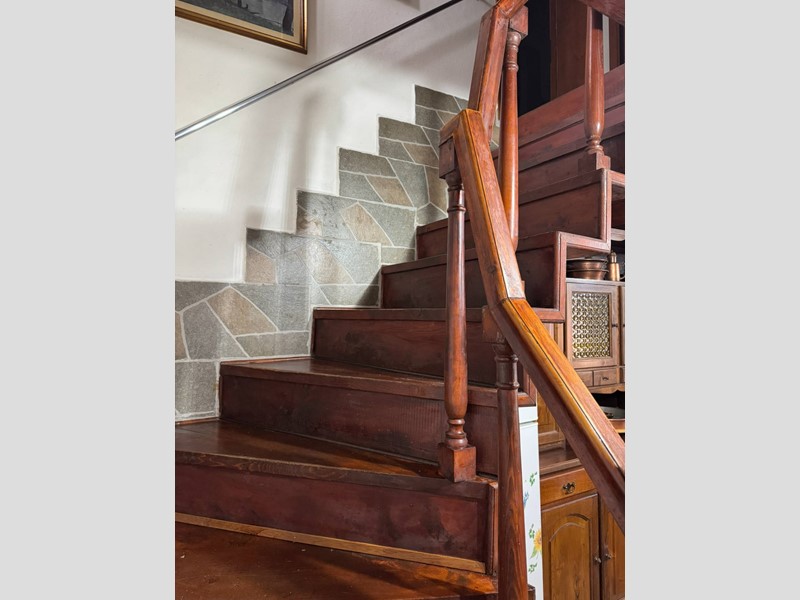 AL PIANO TERRA - SALONE CON ANGOLO COTTURA, CAMINO E SCALA IN LEGNO;