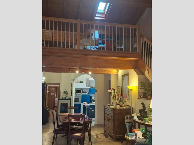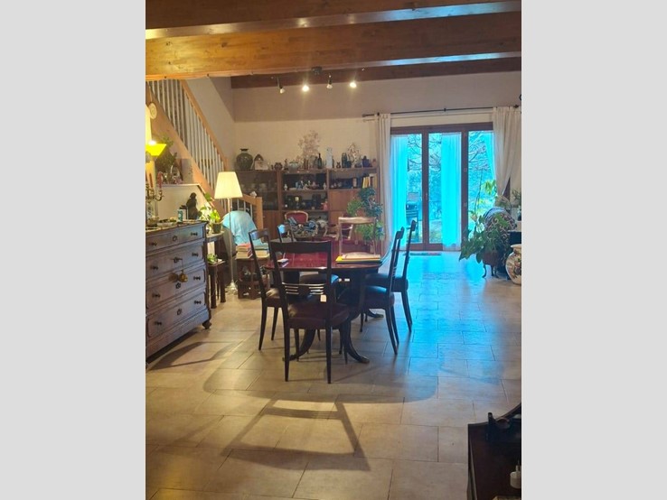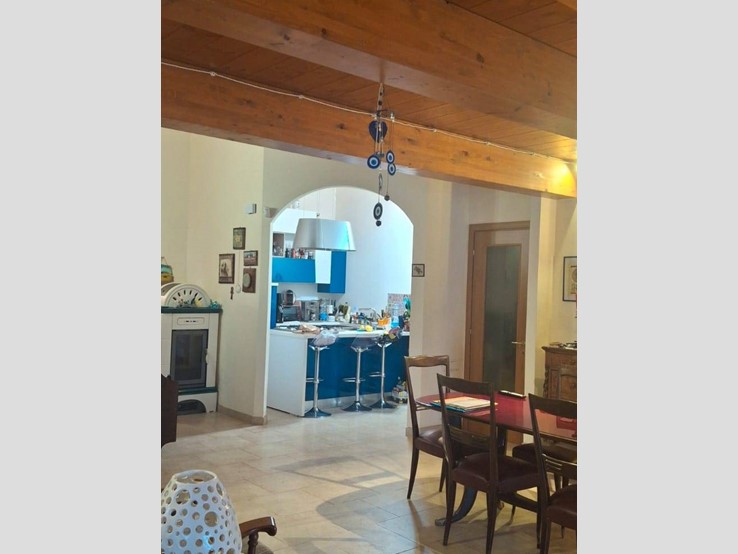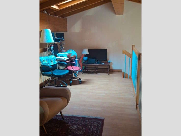 AL PIANO INTERRATO AMPIO LOCALE CON CAMINO, BAGNO CON DOCCIA, STUFA A PELLET, GARAGE CON PORTA BASCULANTE PIU' POSTO AUTO ESTERNO E RAMPA DI ACCESSO A COMUNE.