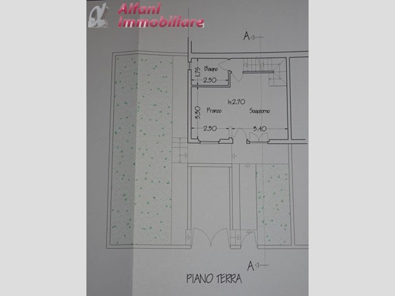 piano terra: pranzo-soggiorno con angolo cottura e bagno