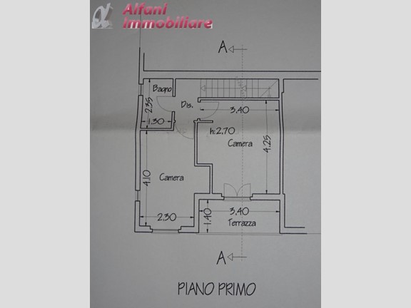 piano primo: 1 camera matrimoniale, 1 camera doppia, bagno e balcone