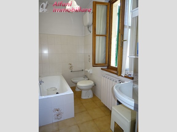 Appartamento di 110 mq ristrutturato, a reddito con contratto in scadenza nel 2027 con possibilità di prolungare, disposto su tre livelli, composto da soggiorno con camino e angolo cottura, ripostiglio al piano terra - studio su soppalco e bagno (con lavatrice) al piano primo, due camere con un bagno ciascuna al piano secondo. Due balconcini con affaccio su giardino interno. Doppio ingresso, uno a comune, uno privato direttamente dalla piazza. Riscaldamento autonomo a metano e stufa economica . Attualmente locato. Giardino privato e corte interna a comune. ATTUALMENTE LOCATO