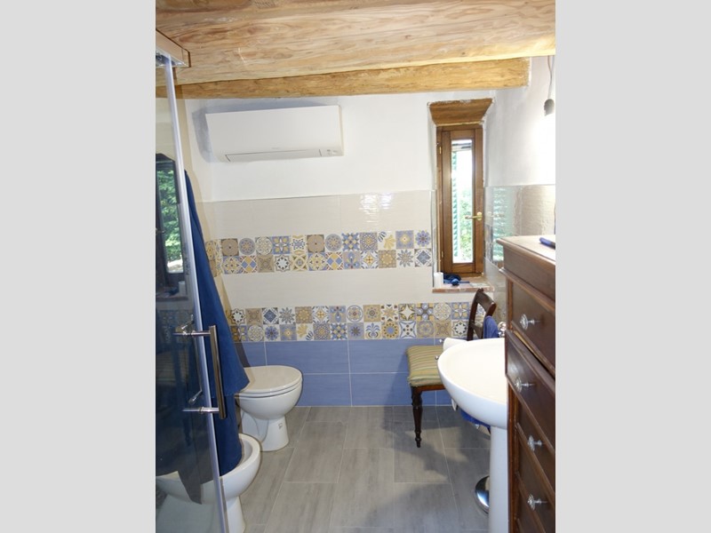 Riscaldamento autonomo elettrico. Pannelli fotovoltaici (2 Kilowatt). Cantina di mq 45 con uscita sulla corte a comune e un quarto di giardino privato. Vedi Rif. 266AC.