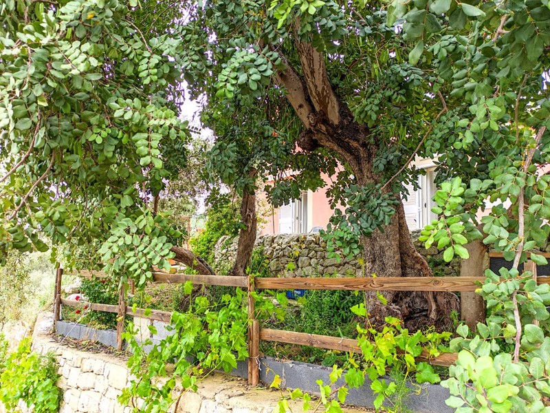 Il terreno presenta un meraviglioso uliveto, due maestosi alberi di carrubbo che contano circa 1500 anni di età e ulteriori gioviani impianti di carrubbo.