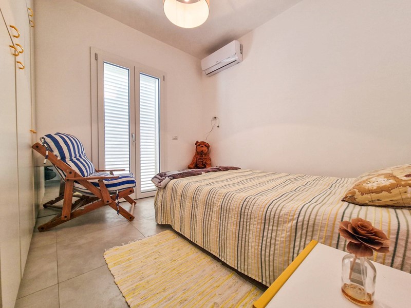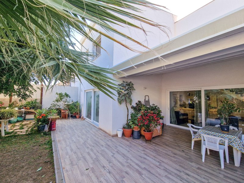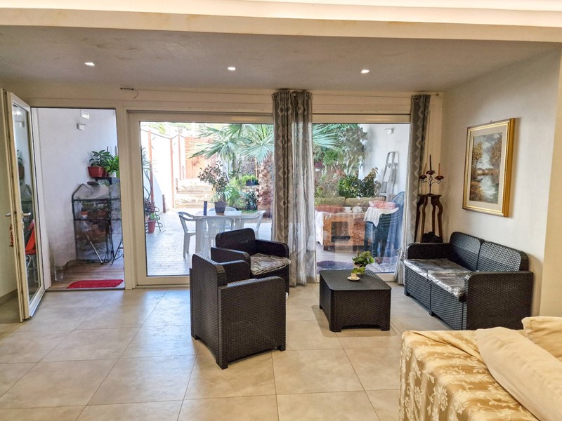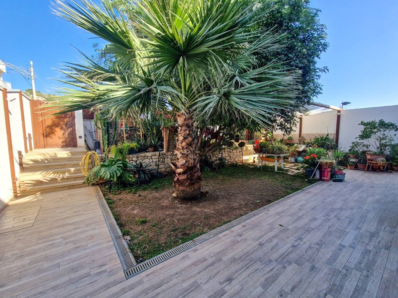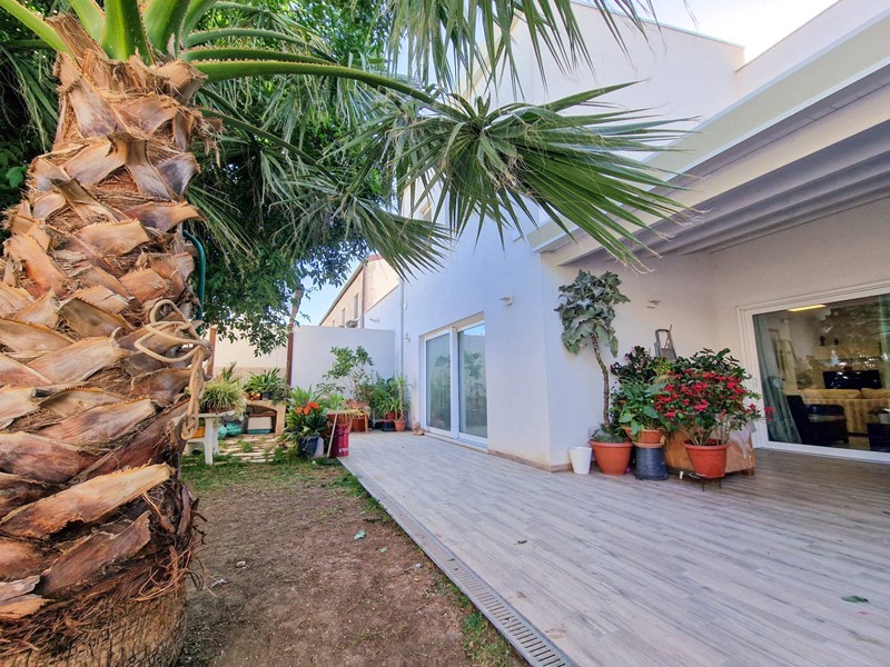 Un'ampia veranda coperta di circa 22 mq accoglie gli ospiti in un'oasi di tranquillità, mentre il giardino privato di 80 mq offre uno spazio rigoglioso e riservato.
