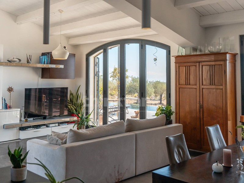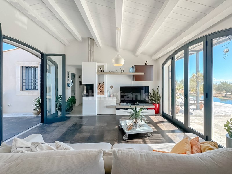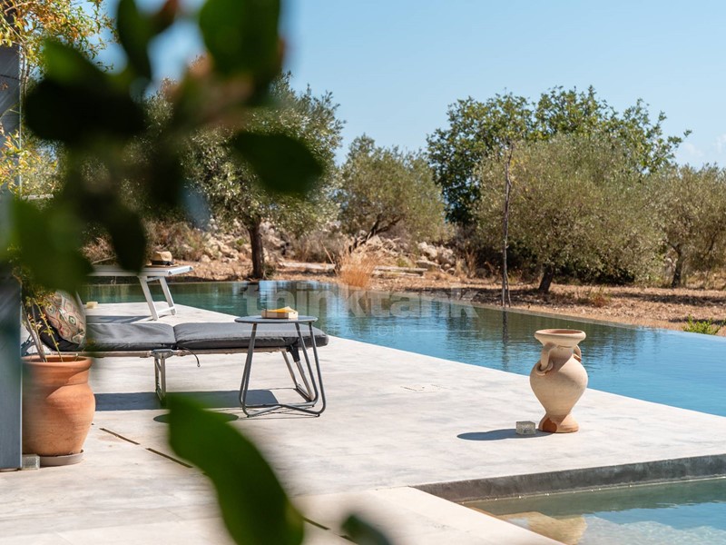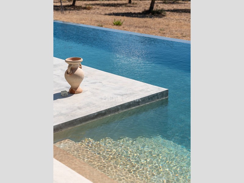 Esternamente, la villa è circondata da un rigoglioso giardino privato che si estende su un terreno di 12.000 mq, adornato da ben 250 alberi di ulivo secolari, perfetti per chi desidera vivere a stretto contatto con la natura. La presenza di una piscina a sfioro di 15x3 metri, con sistema di ricircolo, rappresenta l'ideale per momenti di relax e svago, arricchendo ulteriormente l'esperienza di vivere in questo contesto unico.