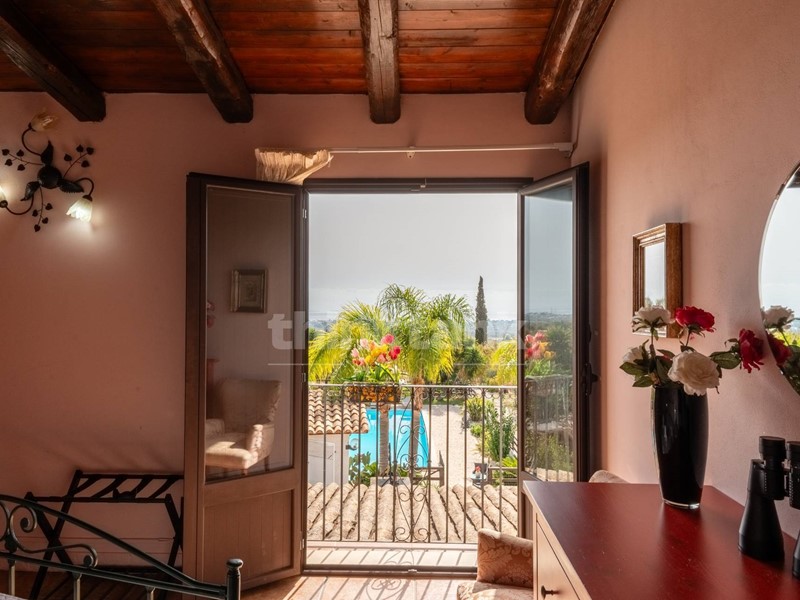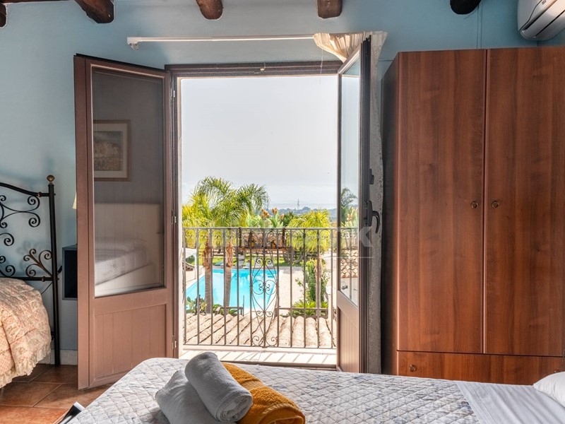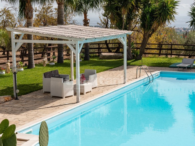 La villa dispone di una magnifica piscina con un ampio solarium circostante e una zona relax con tettoia in legno e confortevoli divanetti, perfetta per trascorrere momenti di pace sotto il sole siciliano. Gli interni sono distribuiti su due livelli: al piano terra, un ampio open space accoglie gli ospiti con una cucina in muratura, un accogliente salone e un bagno. Al piano superiore, tre camere da letto dotate di balconcini offrono una vista mozzafiato sul terreno e sulla piscina, con il mare di Avola a fare da sfondo scenografico.