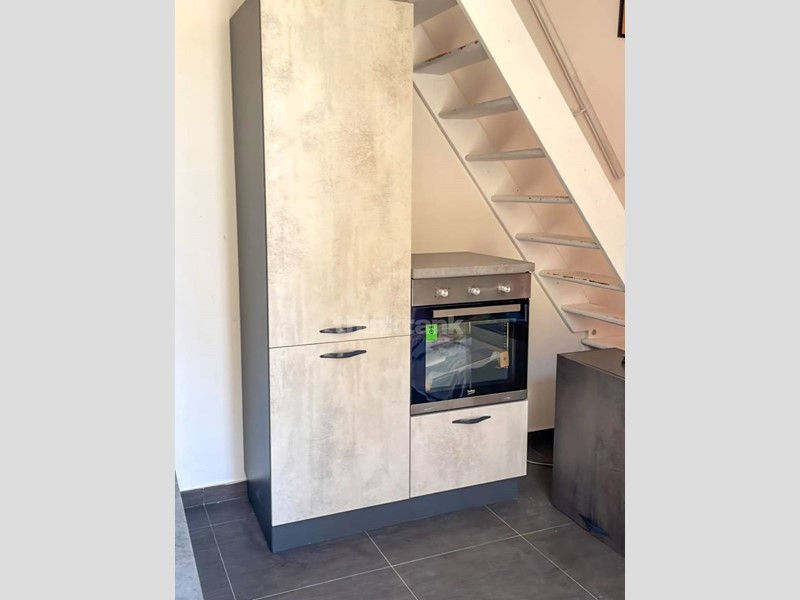 Locale soppalcato/ripostiglio con accesso tramite botola collegata alla scala principale. Questo ambiente, già dotato di impianti idrici e di scarico, è stato pensato come spazio autonomo, ideale per accogliere un animale domestico in un'area riservata e indipendente dalla casa.