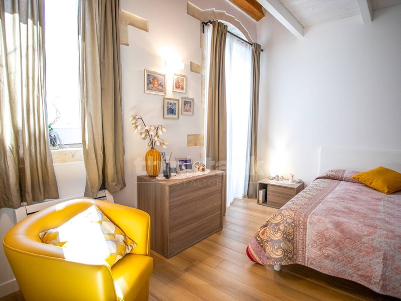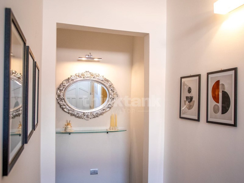Finiture di pregio: pavimentazione storica valorizzata grazie a un'attenta lucidatura, infissi in legno con doppio vetro-camera e taglio termico che garantiscono ottima coibentazione e isolamento acustico.