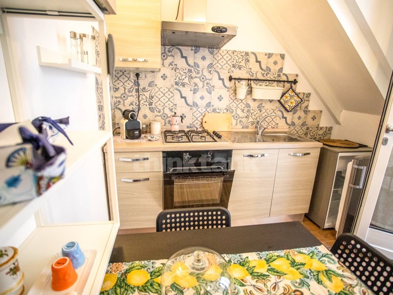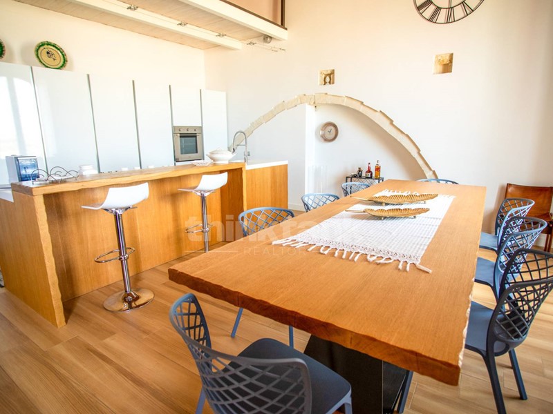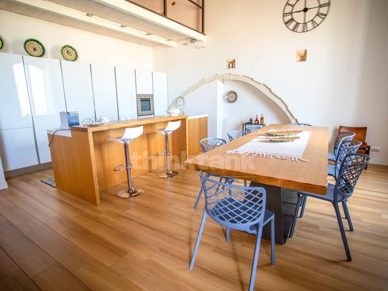 La cucina, arredata con mobili di alta qualità, si sposa perfettamente con lo stile moderno e raffinato della casa, creando un ambiente elegante e funzionale